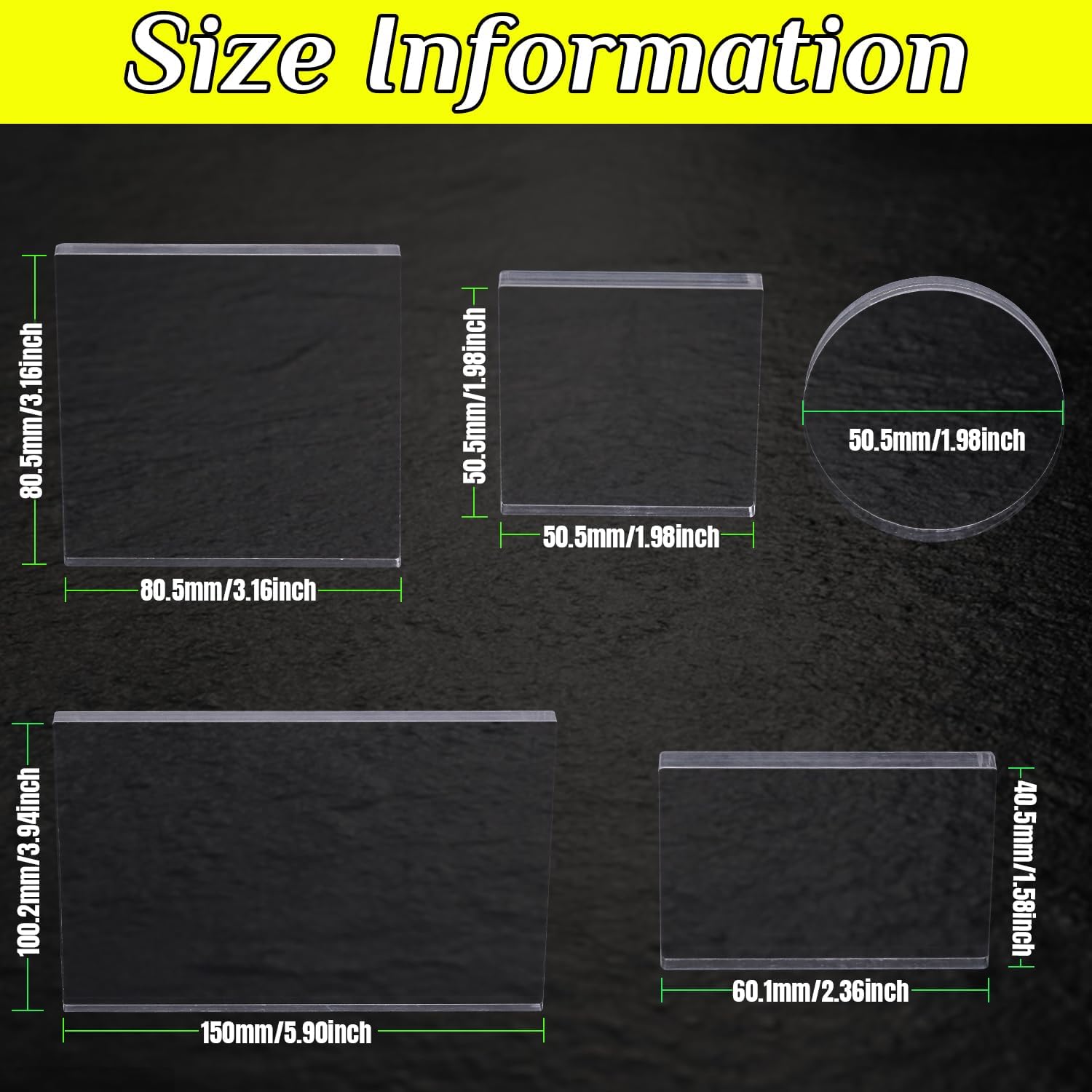 - [What You Get]: We offer you 5 different sizes of stamp block set to meet all your stamping needs; sizes include: 1.95 x 0.15 inches, 2 x 2 x 0.15 inches, 2.35 x 1.55 x 0.15 inches, 3.15 x 3.15 x 0.15 inches, 5.85 x 3.95 x 0.15 inches
