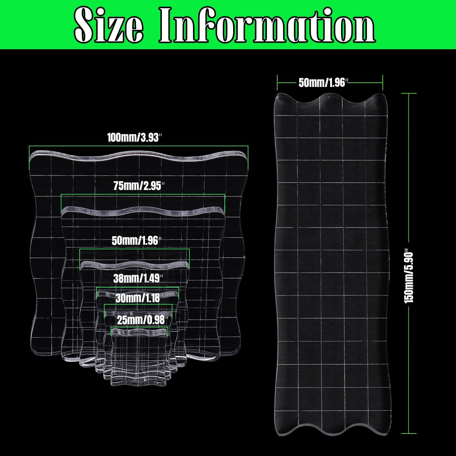 - [Unique Design]: Acrylic stamping blocks are clearly designed with 1 x 1 cm grid lines for planning and designing, helping you to accurately position and apply.