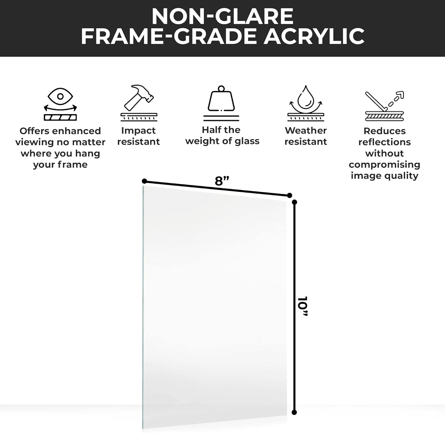 - NON-GLARE FRAME-GRADE ACRYLIC: Lightweight, UV-resistant & shatter-resistant to protect your framed 16x23 photographs & prints while reducing reflections & glare.
