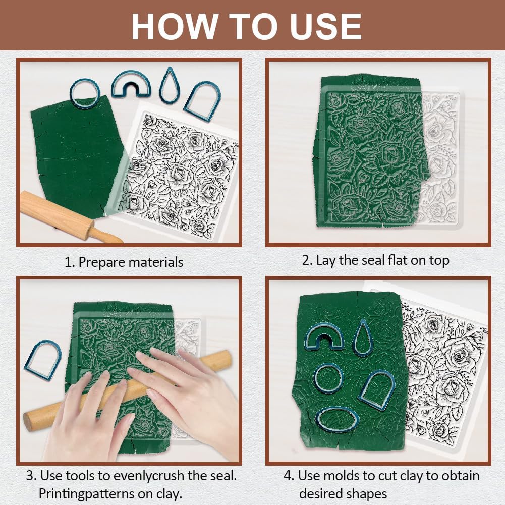 - Personalized Jewellery Making: Use these high quality silicone clear rose silicone stamp pieces to add unique patterns and textures to your polymer clay jewelry and clay earrings. The details of this clay texture mat are quite pretty and make a nice accent on clay slab.