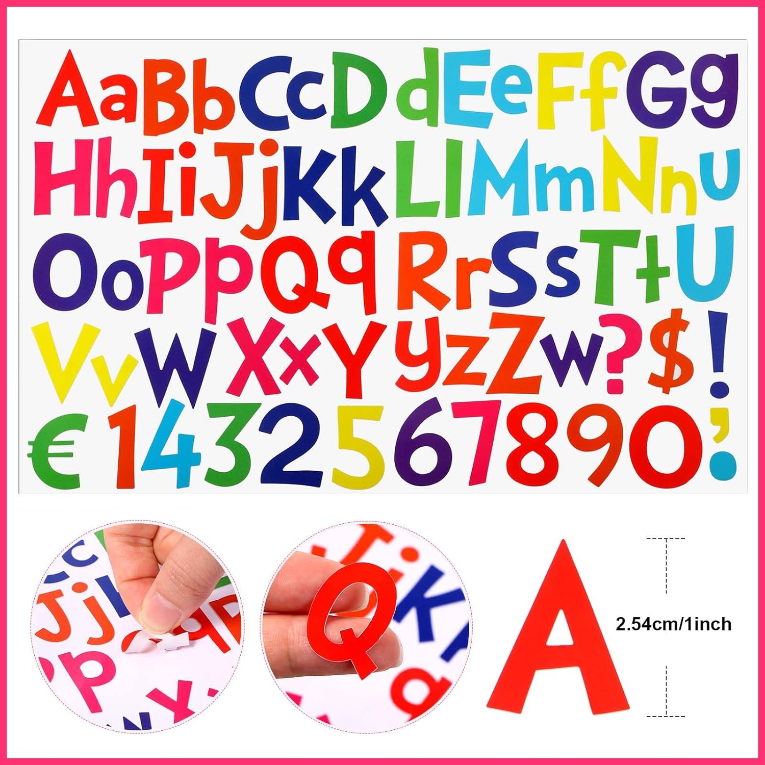 TaoBary 544 Pcs 2 Inch 16 Sheets Large Letter Stickers, Upper and Lower Case, Adhesive Vinyl Alphabet Sticker for Bulletin Board, Poster, Bottle, DIY, Notebook(Bright Color,1 Inch)