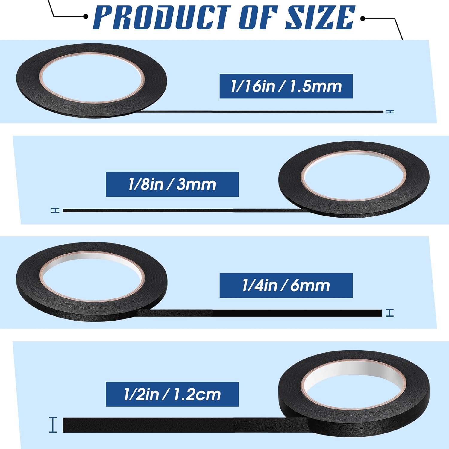 Epakh 4 Rolls Pinstripe Tape, Masking Tape in 1/16, 1/8, 1/4 and 1/2 Inch Wide, for Painters Automotive DIY Car Auto Paint Art(Black,55 yd)