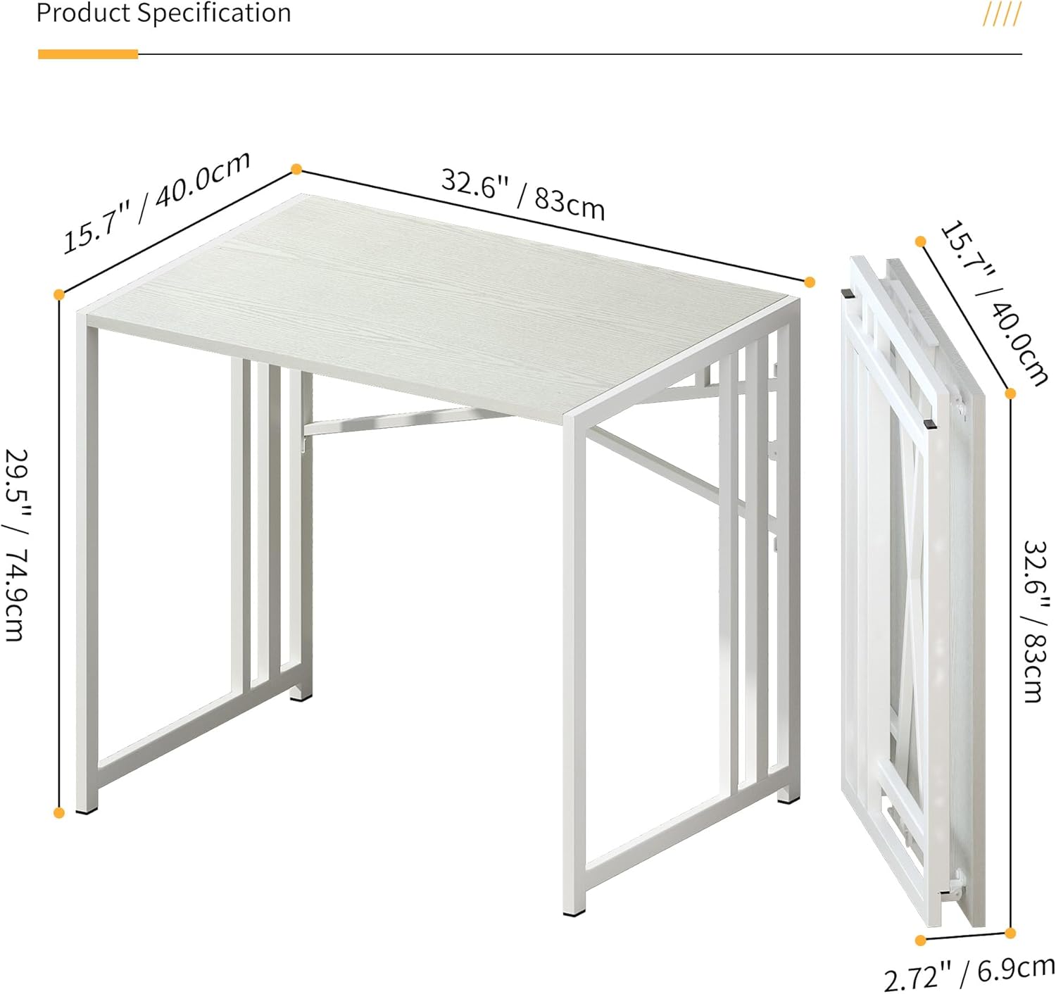 Small Folding Desk 32 inch, No Assembly Required Small Office Desk, Writing Gaming Computer Camping Desk, White