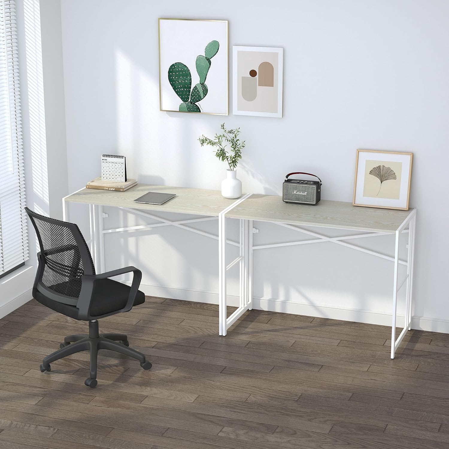 40 inch Folding Desk, Writing Gaming Computer Camping Desk, No Assembly Required Home Office Table, Natural and White