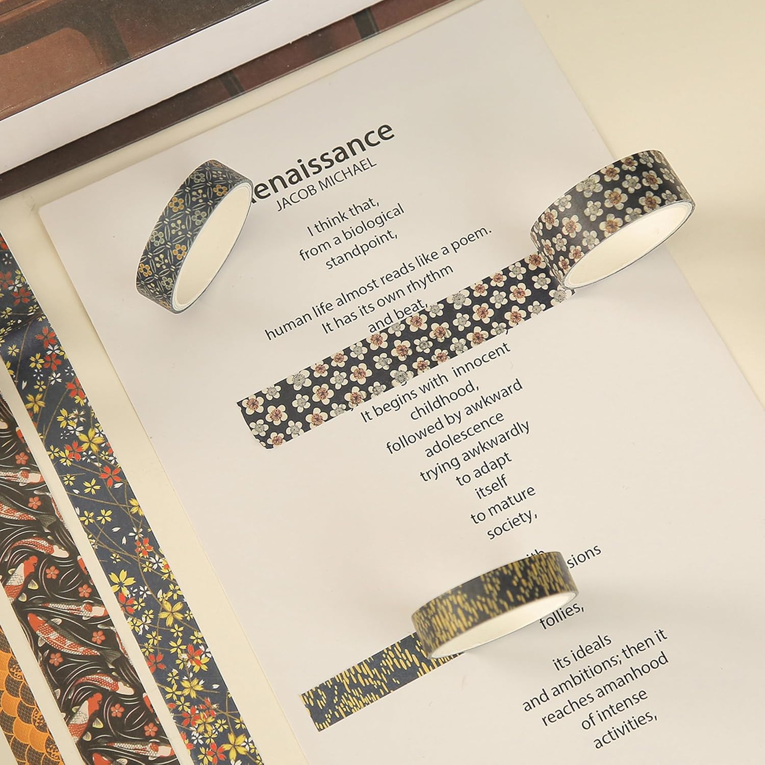 - 👍【GOOD STICKING & TRPATIABLE】These washi tapes will NOT damage your art works. It can torn easily by hand and sticky on clean surfaces, such as wood, paper, wall, glass, vinyl, plastic, leather, metal and laminate and so on