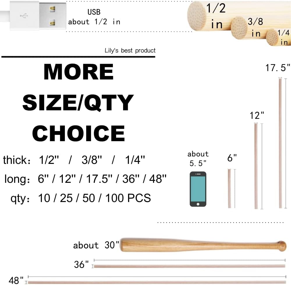 - The Dowel Rods are made from high quality natural bamboo,strong and durable, not easy to deform.