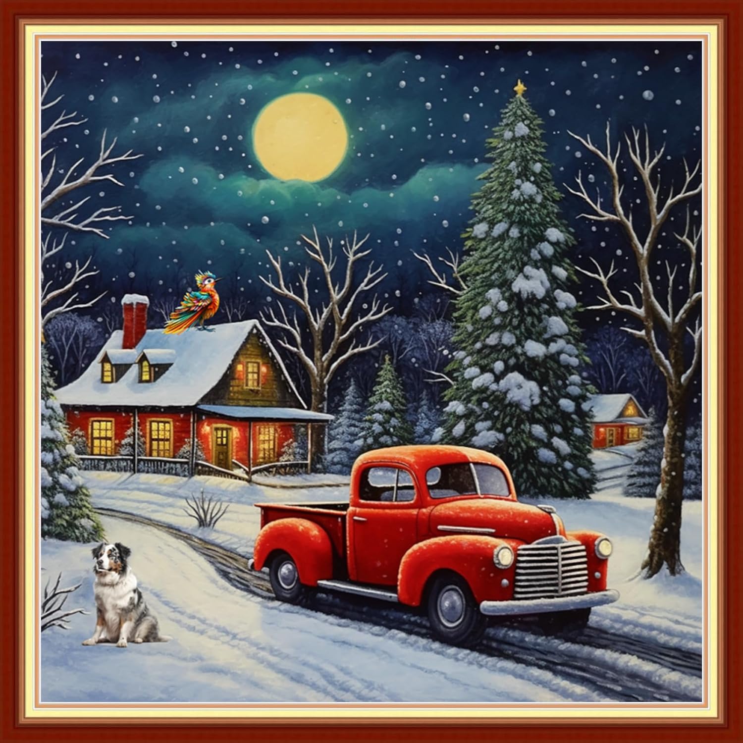 Disxvivy Cross Stitch Stamped Full Embroidery Kits DIY 11CT Cotton Thread Printed DIY Needlepoint Kits Craft Needlework Set Cross-Stitch Stamped Sets- Winter Snow Scenery 18x18 inch