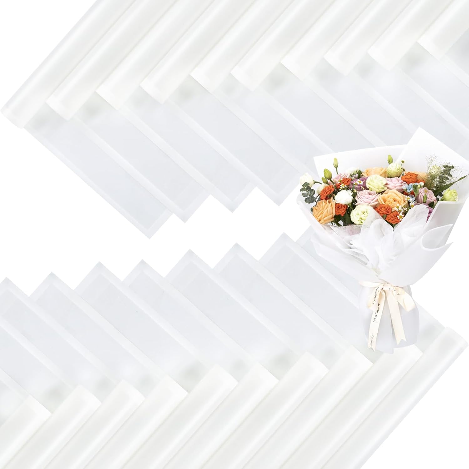 FUHITIM 20 Sheets Flower Wrapping Paper - Waterproof Floral Bouquet Packaging Paper for DIY Crafts,Florist Supplies Packaging Paper for Wedding Birthday Gift (Translucent White)