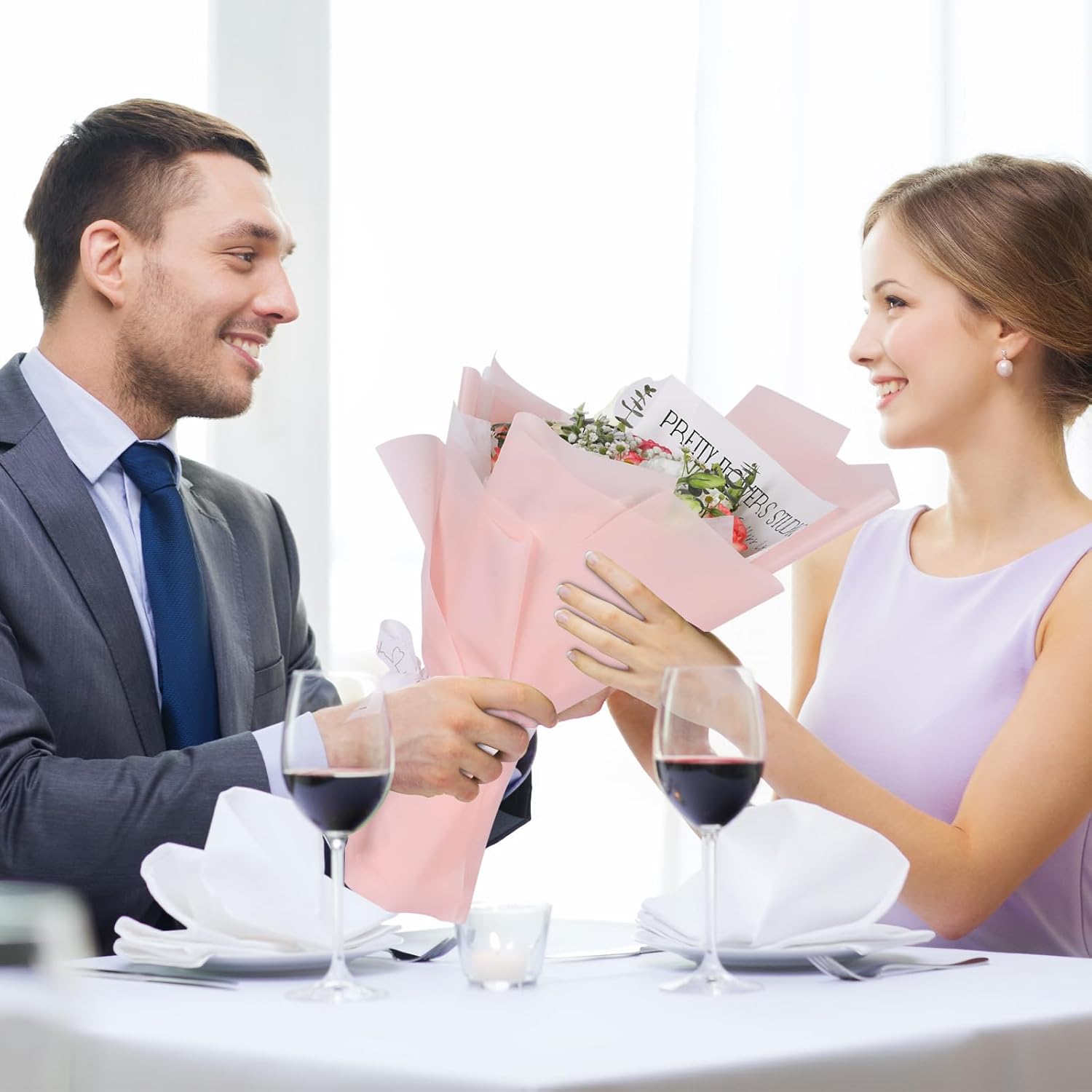 - 【Elegant Design】Classic Light Pink design,new and charming color lines make the whole bunch of flowers full of fashion design.smooth and comfortable to touch,makes wrapping paper more noble.
