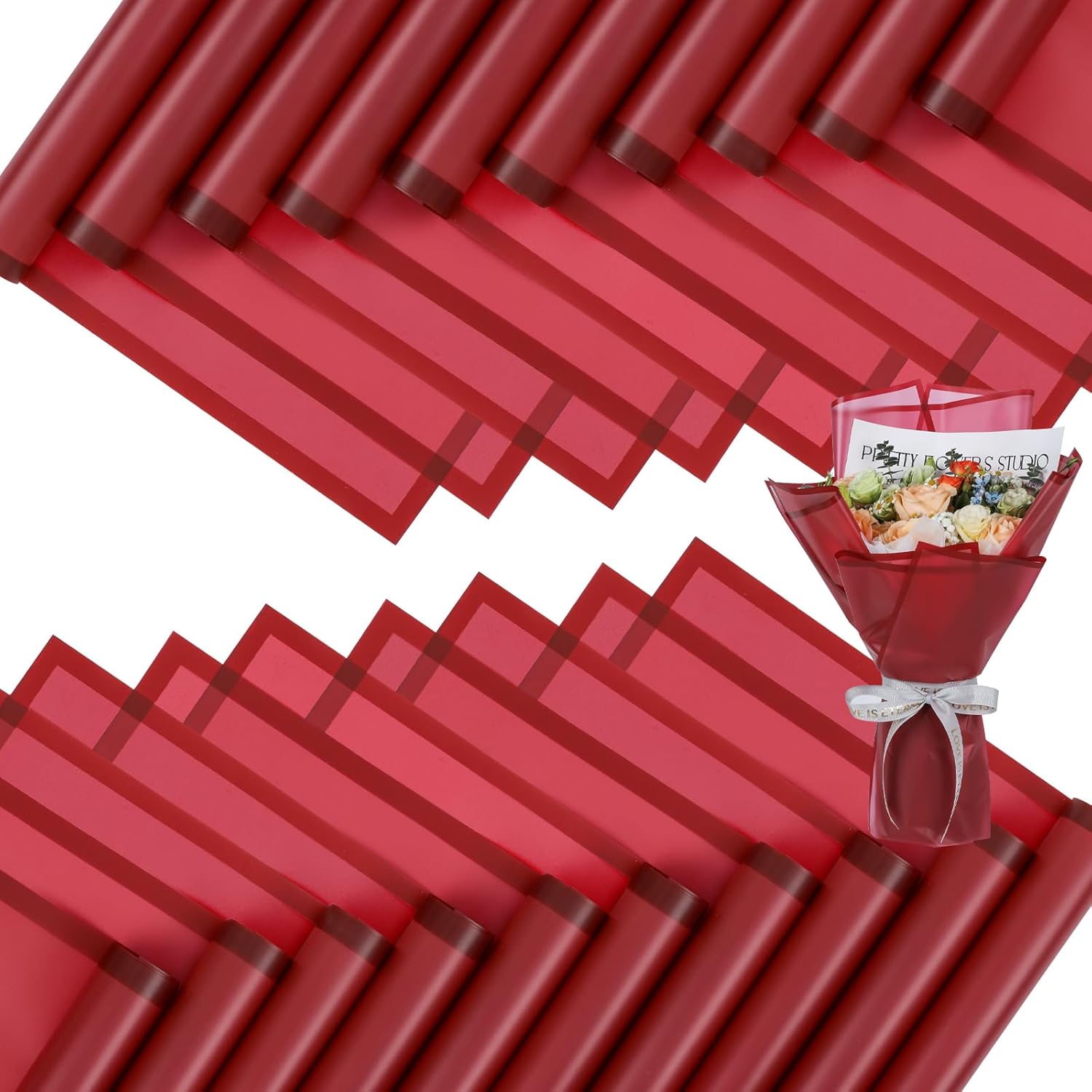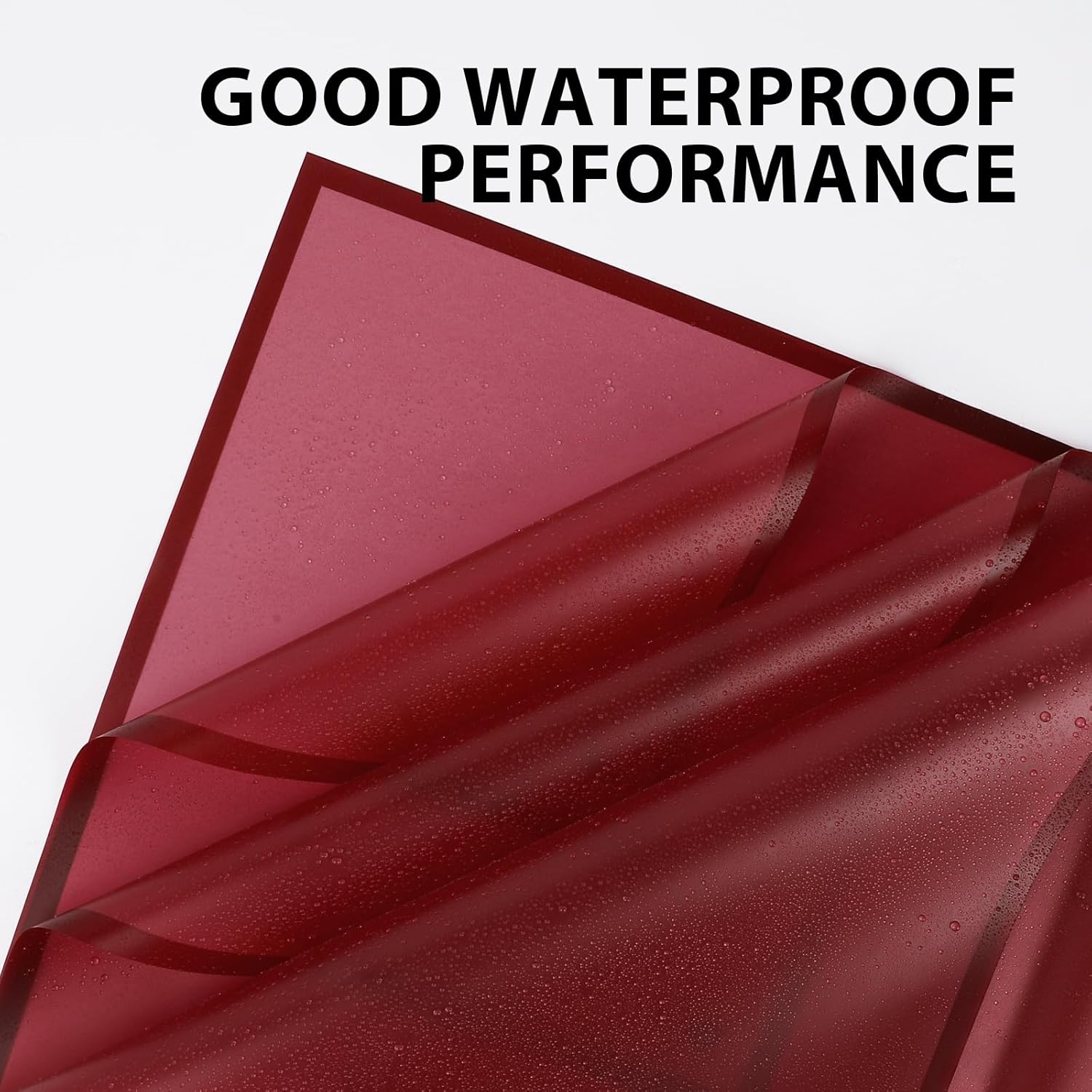 FUHITIM 20 Sheets Flower Wrapping Paper - Waterproof Floral Bouquet Packaging Paper for DIY Crafts,Florist Supplies Packaging Paper for Wedding Birthday Gift (Translucent Wine Red)