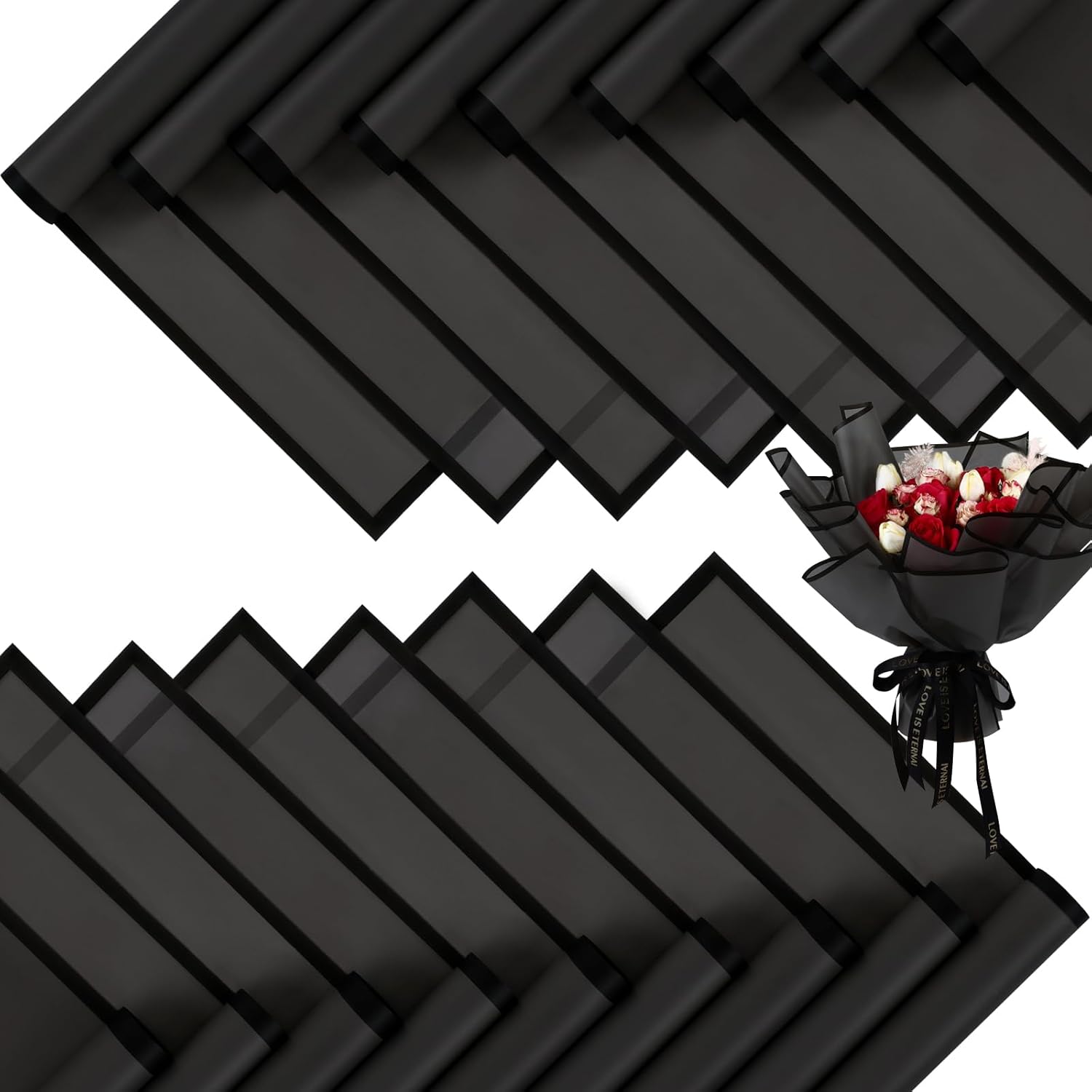 - 【Elegant Design】Florist paper is designed with using classic semi transparent material, the edges are designed in black color with a frosting, features glossy and vibrant colors, smooth and comfortable to touch. Is the perfect choice for bouquet packaging.