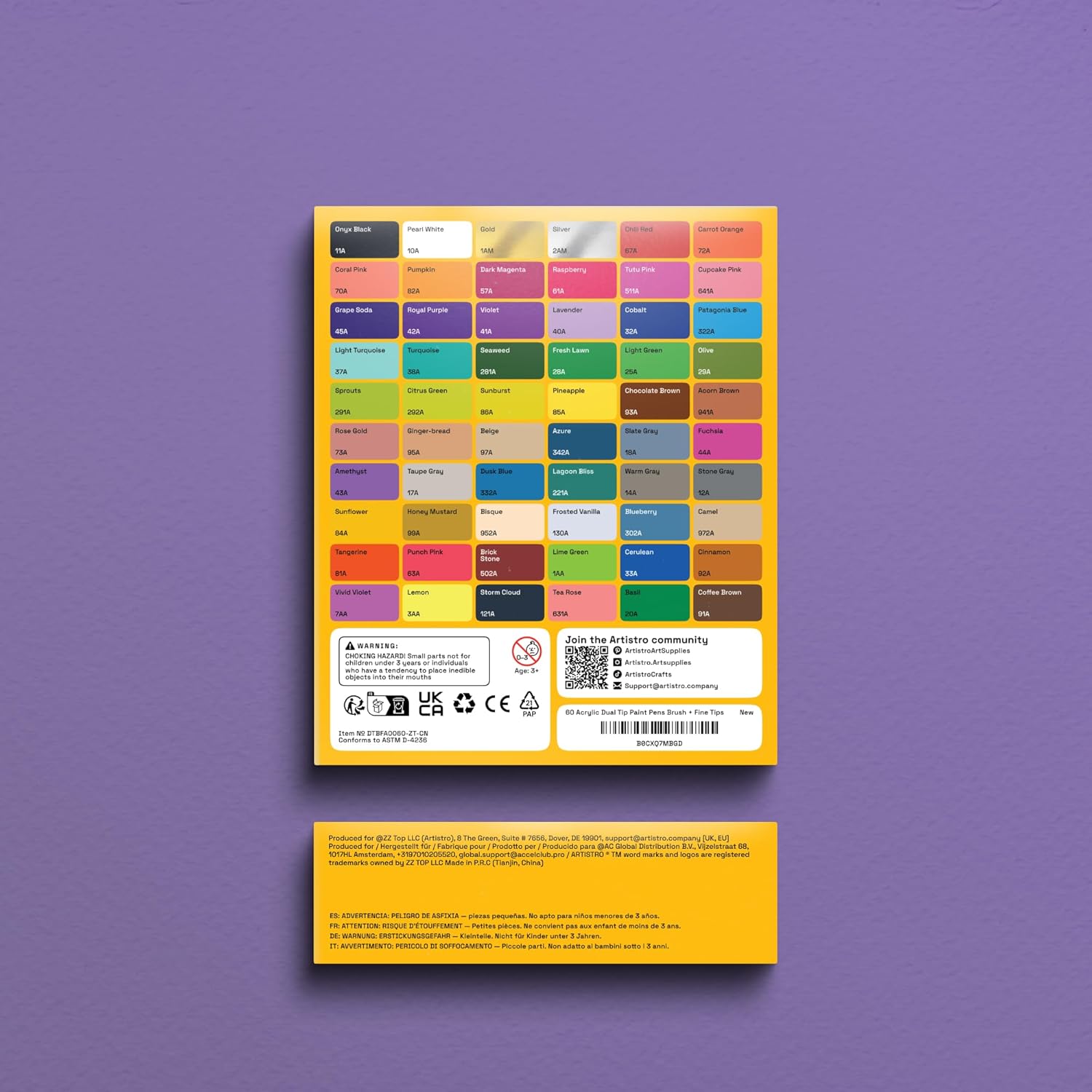 ARTISTRO 60 Dual Tip Brush + Fine Acrylic Paint Markers - Easy for All Ages & Levels Paint Pens for Fabric, Rock, Glass, DIY - Halloween Pumpkin Painting Kit, Art Supplies, Christmas Gift