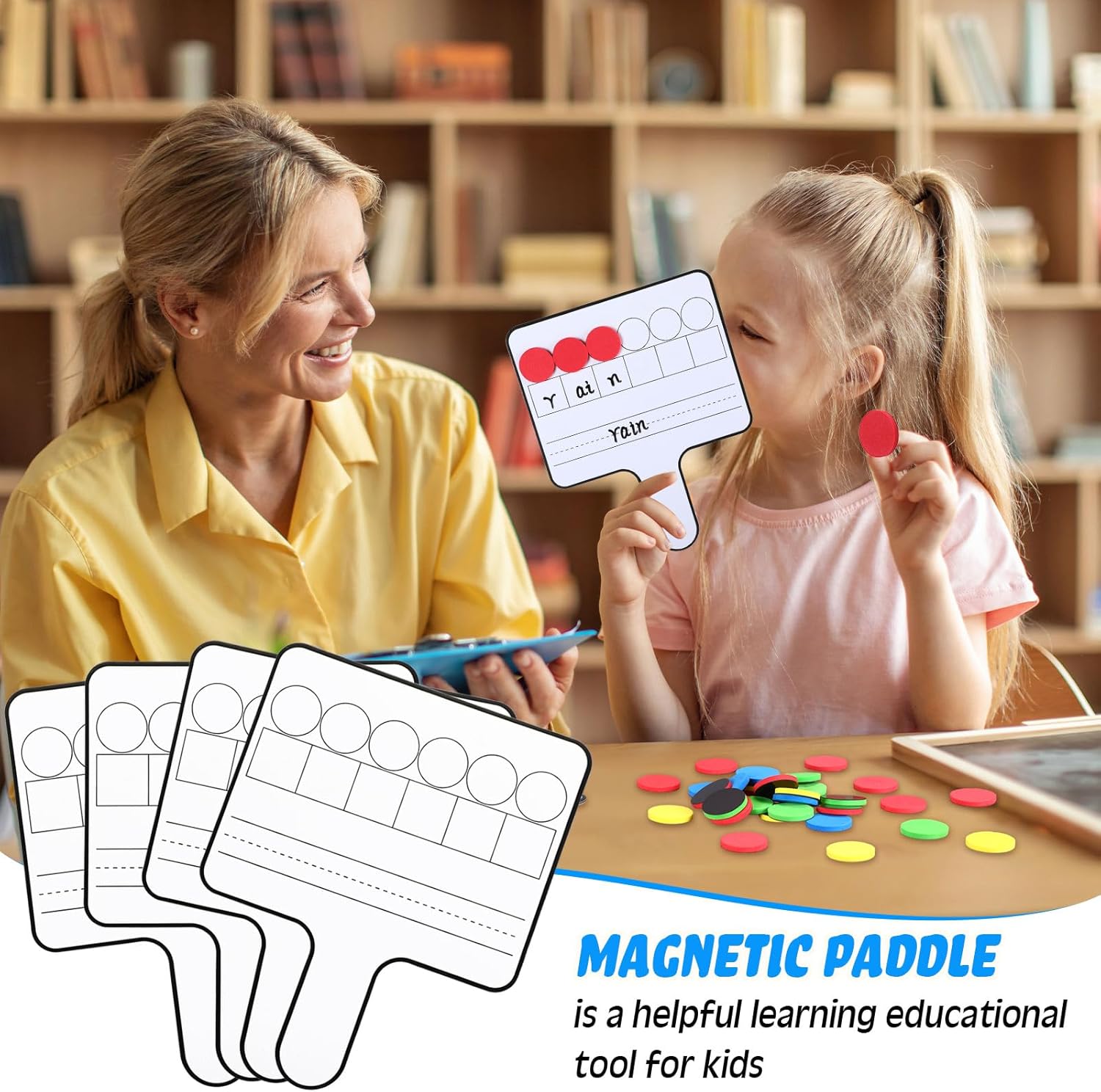 - What You Get: you will get 63 pieces of answer paddles set includes 9 double sided magnetic paddles for phoneme manipulation and 54 pieces of magnetic foam disk teaching aids; They are reusable and lightweight, ideal for using in class