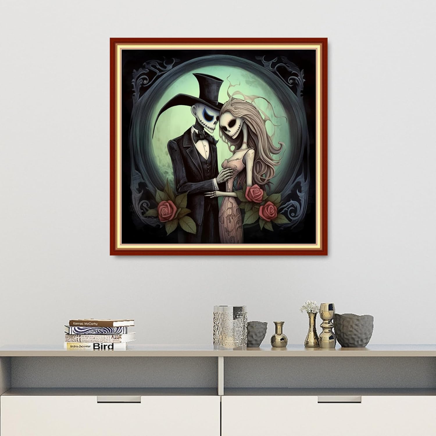 Dooxvey Cross Stitch Kits for Adult Beginners - Full Range of Stamped Kits, Needlepoint & Embroidery Kits - 11CT Cross Stitch Patterns - Skeleton Couple - 18x18 inch