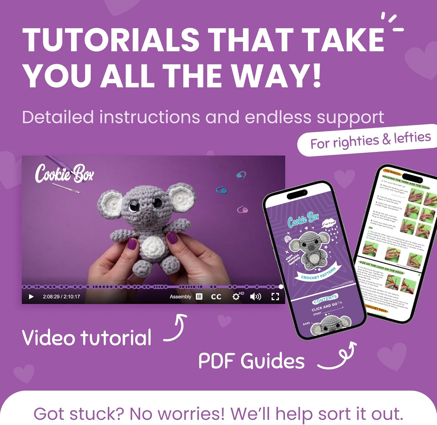 Cookie Box Crochet Kit for Beginners β Gift Set to Make Koala Coal Amigurumi Plushie β Easy DIY Crochet & Knitting Starter Kit with Video and PDF Tutorials