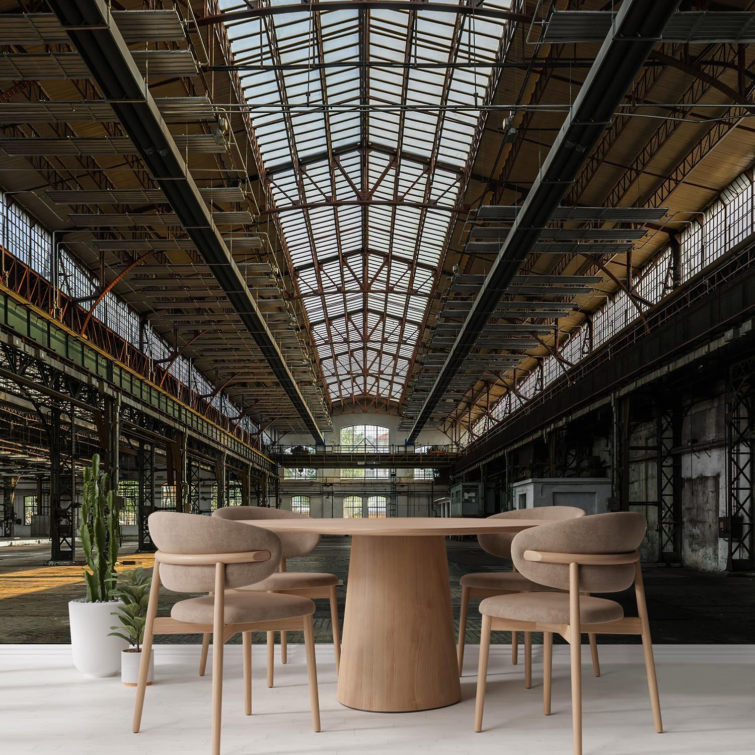 wall26 Wall Sticker/Wall Mural Industrial Interior of an Old Factory Building, Not Peel and Stick, Non-Woven Wallpaper Decorative for Bedroom, Living Room, Office - 100x144 inches