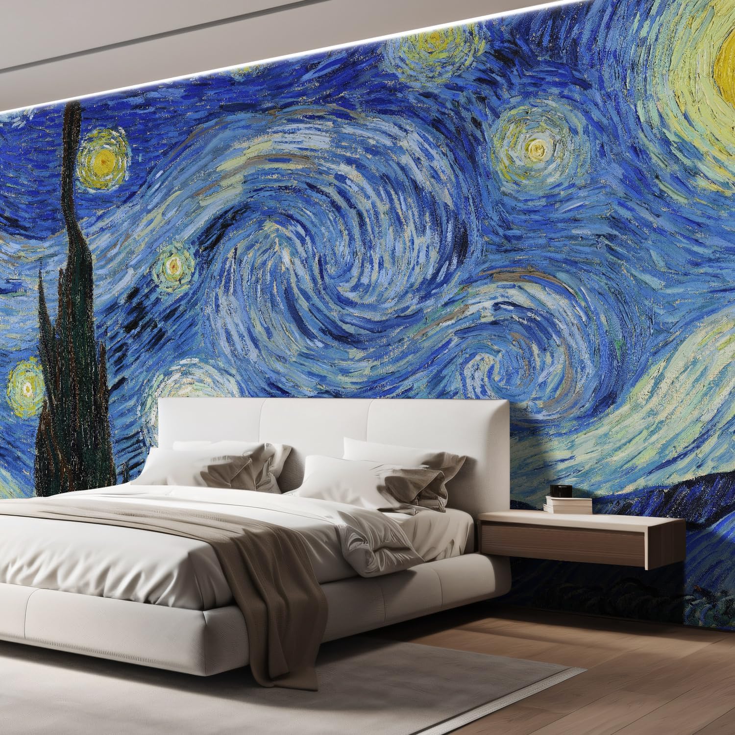 wall26 Wall Sticker/Wall Mural Starry Night by Vincent Van Gogh Dutch Impressionism, Not Peel and Stick, Non-Woven Wallpaper Decorative for Bedroom, Living Room, Office - 132x192 inches