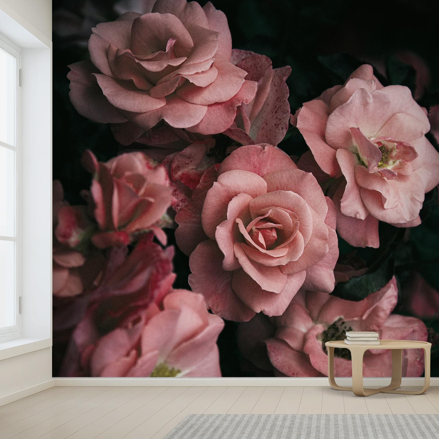 wall26 Wall Sticker/Wall Mural Dark Rose Flower Blossoms Nature Wilderness, Not Peel and Stick, Non-Woven Wallpaper Decorative for Bedroom, Living Room, Office - 96x144 inches