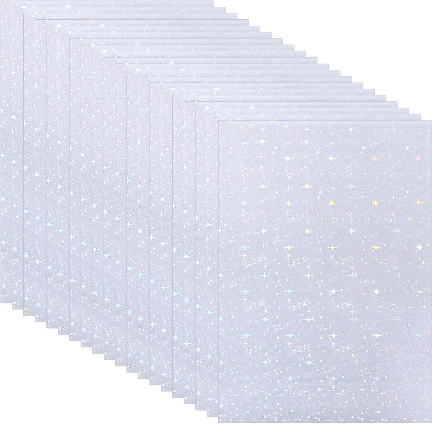 - Specification: Material: Polypropylene (Laser Film), Paper (Backing); Color: Transparent; Pattern: Starlight; Size: A5 Size (LxW: 210x148mm/8.3x5.8inch); Package List: 20Sheets x Holographic Sticker Paper