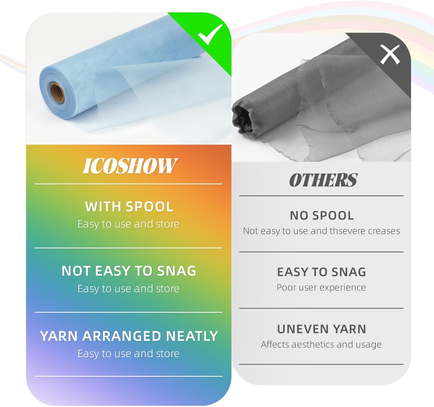 - 【Convenient to Store & Use】Cut it freely according to the length you want, and the edges will not unravel. The organza fabric wraps neatly around a paper core for easy folding and storage. It can maintain its vivid original color after repeated use, and it is not easy to fade.