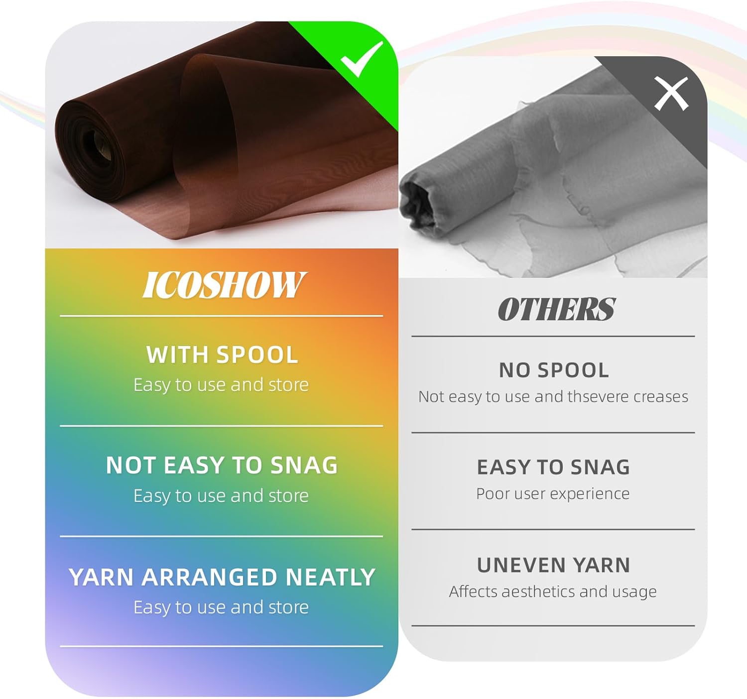 - 【Convenient to Store & Use】Cut it freely according to the length you want, and the edges will not unravel. The organza fabric wraps neatly around a paper core for easy folding and storage. It can maintain its vivid original color after repeated use, and it is not easy to fade.