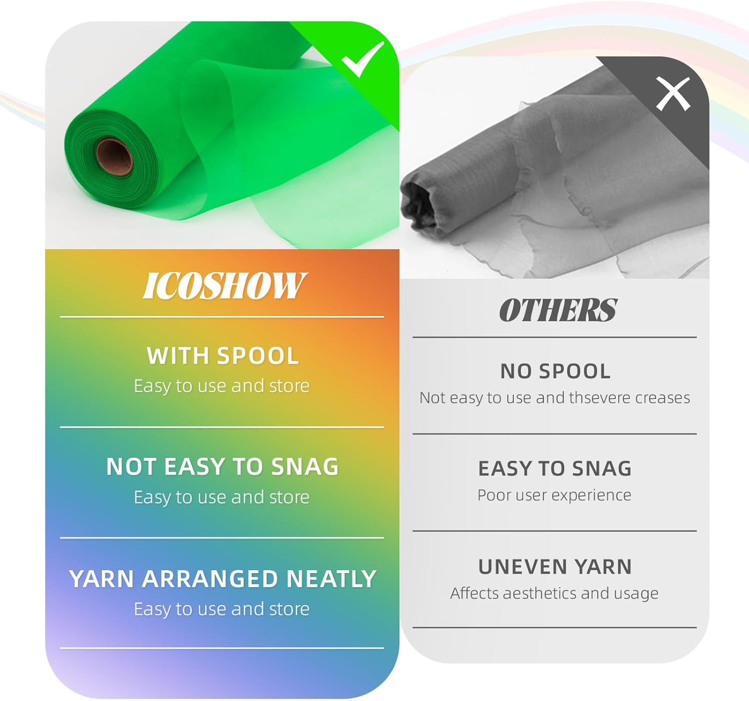 - 【Convenient to Store & Use】Cut it freely according to the length you want, and the edges will not unravel. The organza fabric wraps neatly around a paper core for easy folding and storage. It can maintain its vivid original color after repeated use, and it is not easy to fade.