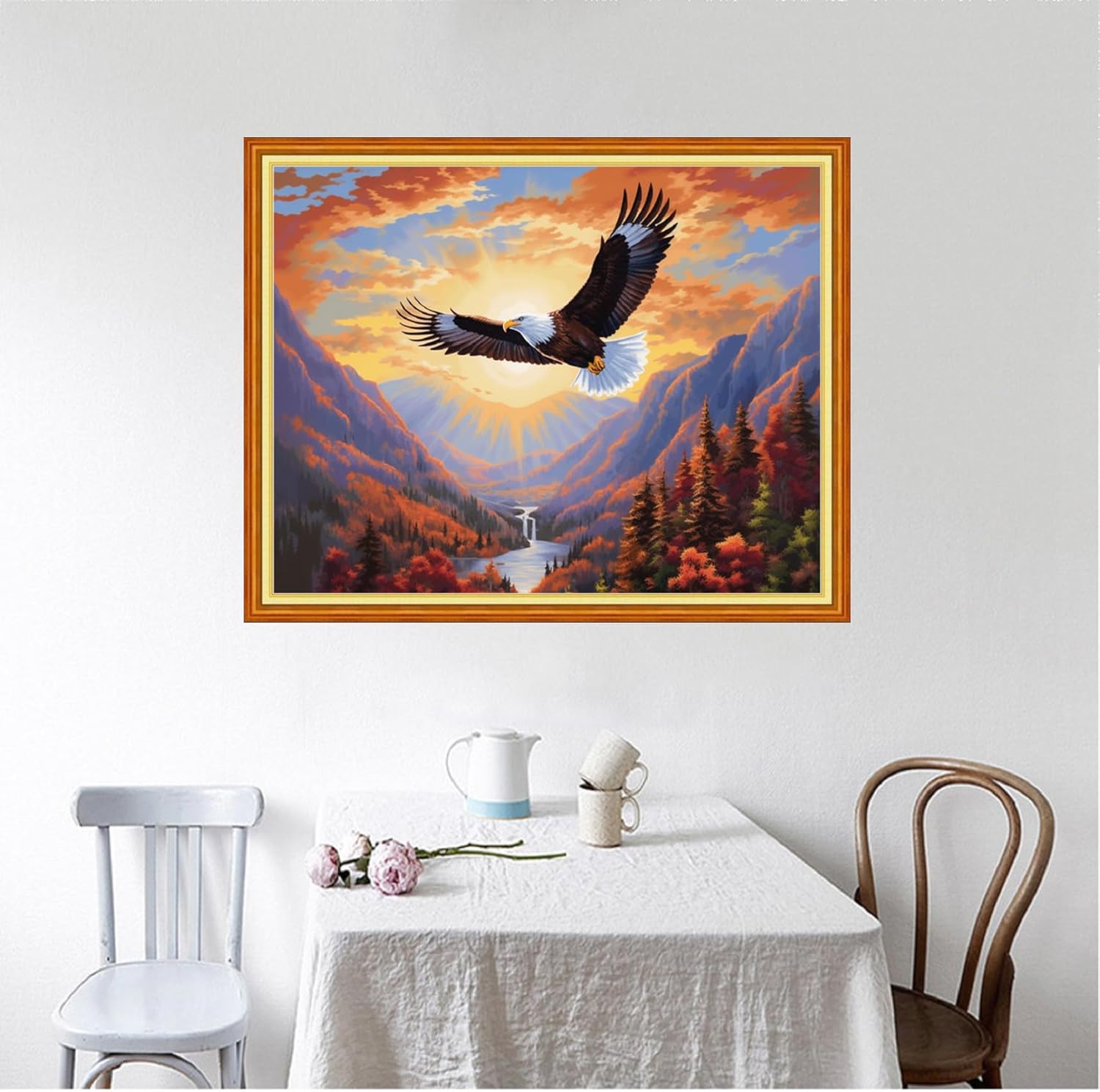 Foxhool Beginners Cross Stitch Kits Stamped Full Range of Embroidery Kits for Adults DIY Cross Stitches kit Embroidery Patterns for Needlepoint kit-Eagle Mountain River 16x20 inch