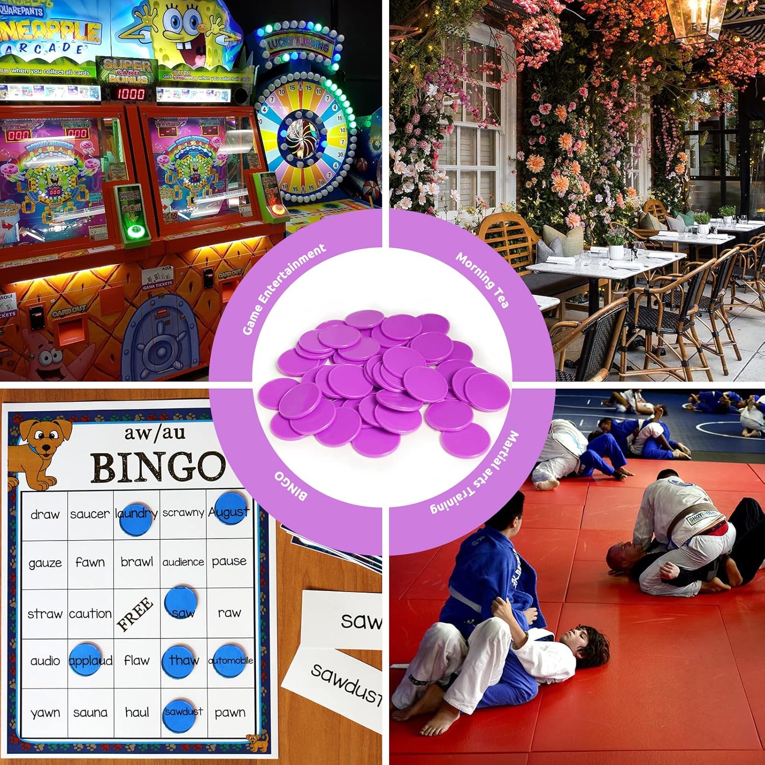 Set of 100 Opaque Plastic Learning Counters Mini Poker Chips Game Tokens with Storage Box (Purple, 1.58 Inch)