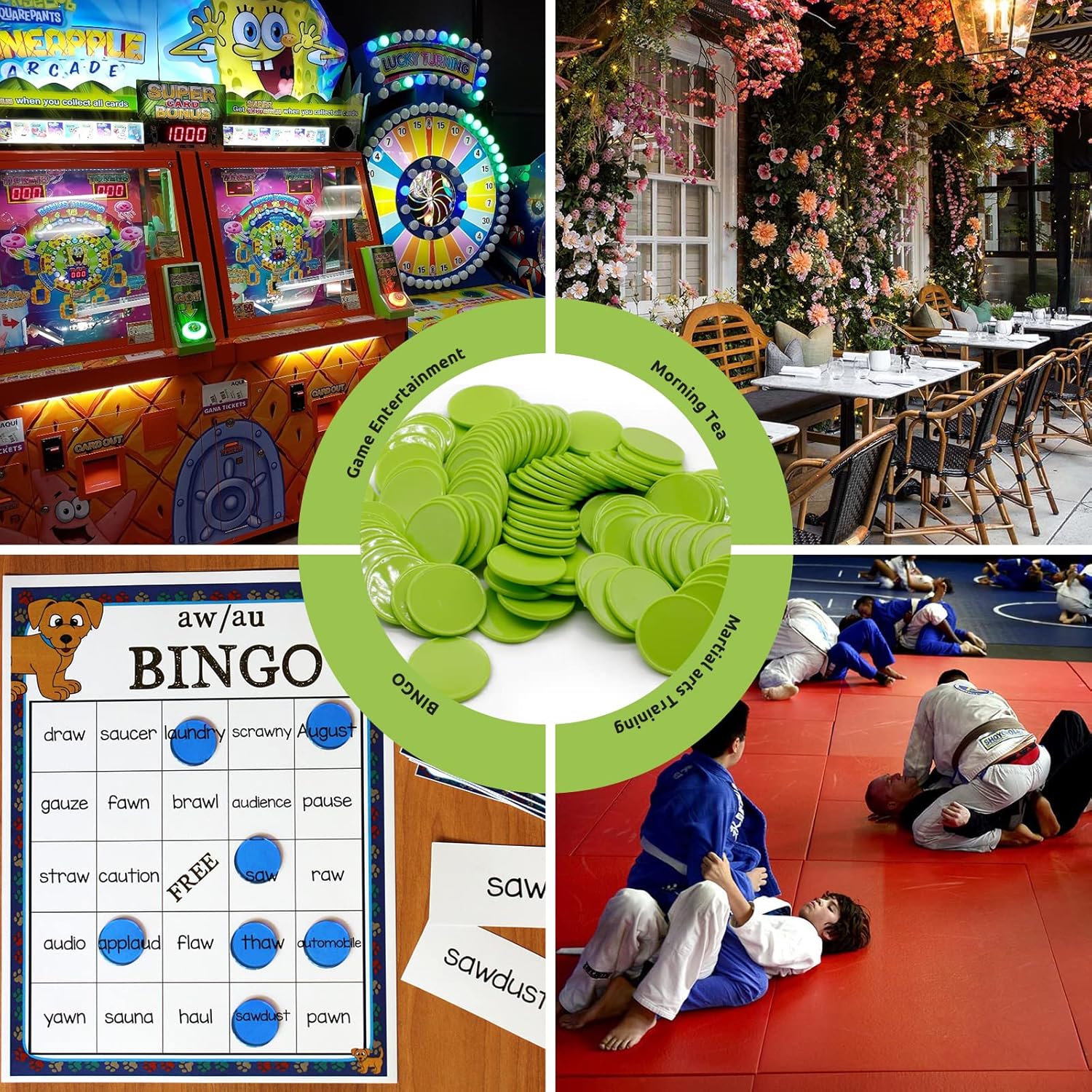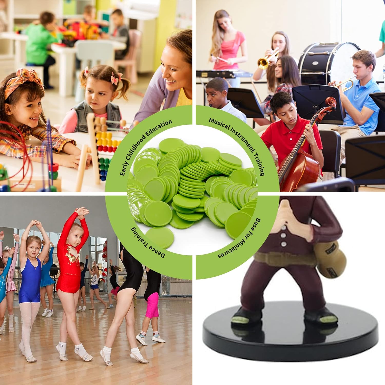 Set of 100 Opaque Plastic Learning Counters Mini Poker Chips Game Tokens with Storage Box (LawnGreen, 1.58 Inch)