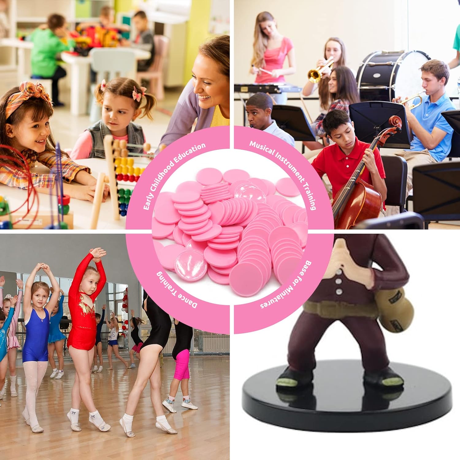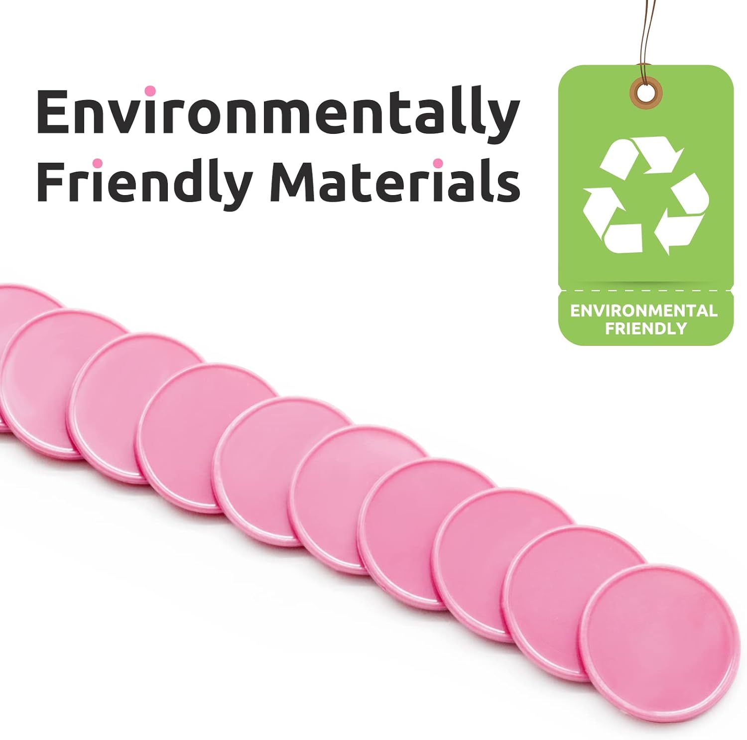 Set of 100 Opaque Plastic Learning Counters Mini Poker Chips Game Tokens with Storage Box (Pink, 1.26 Inch)