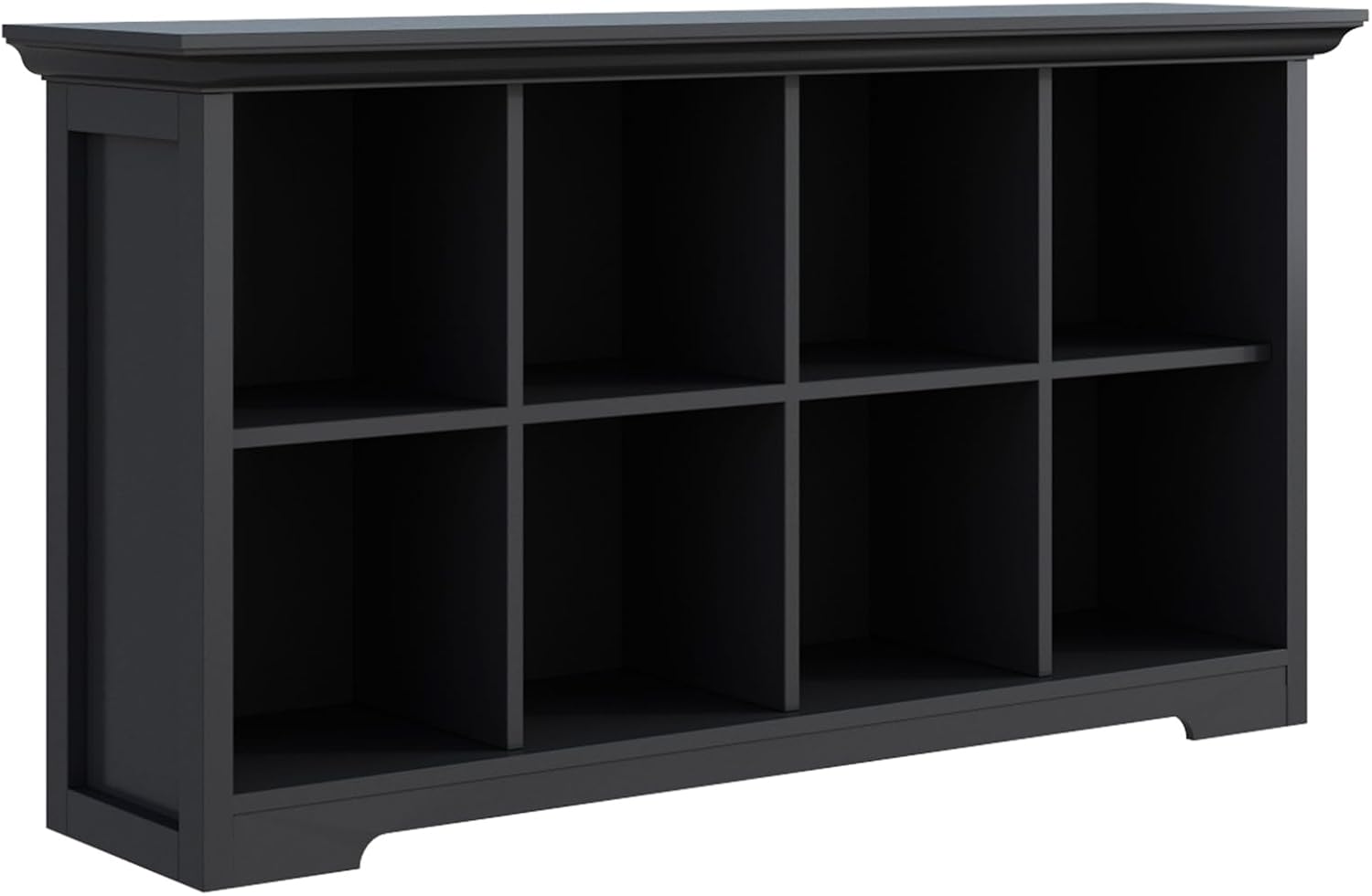 Cube Shelf Bookcase with Base - Wooden 2 Tiers Floor Standing Low Storage Cabinet for Home and Office, 8-Cube Lattice Bookshelf, Black