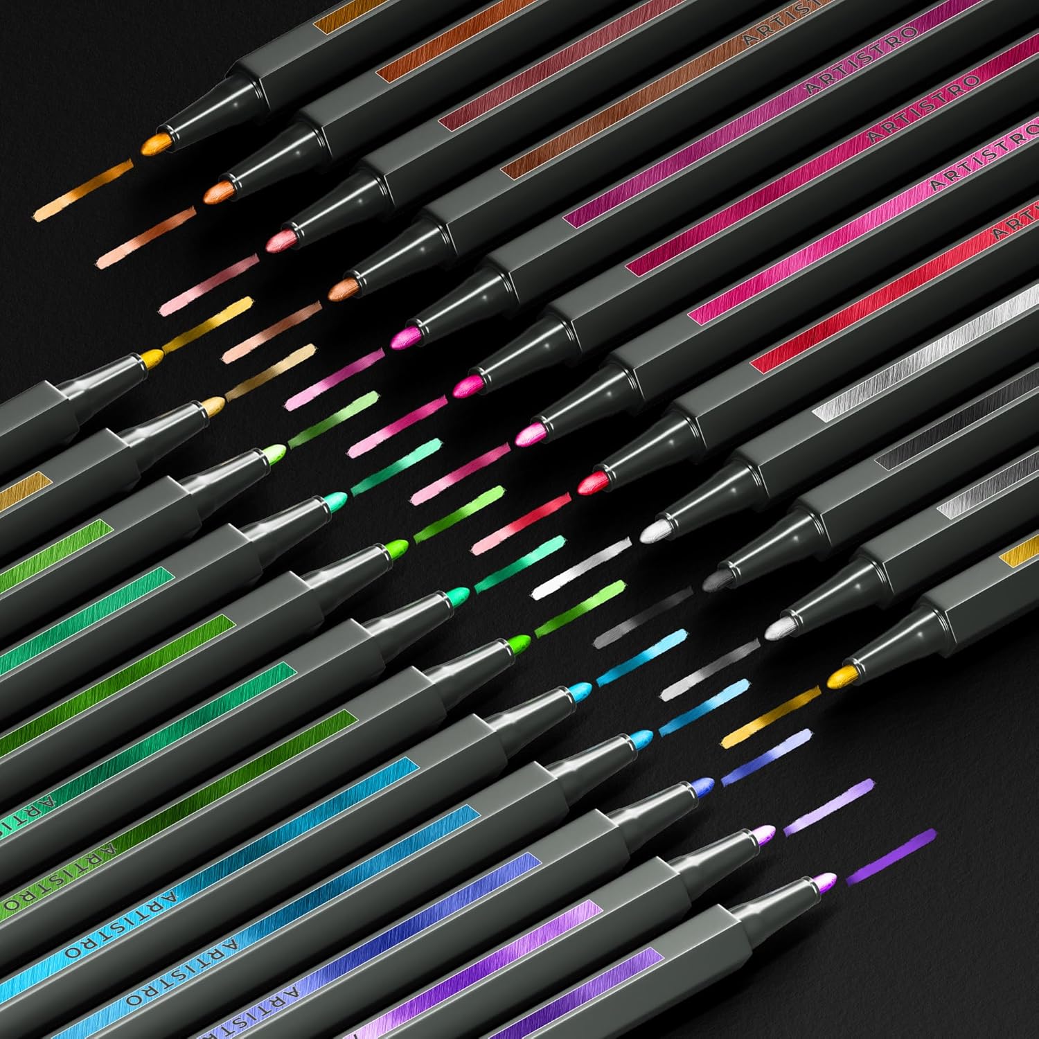 - MULTI-SURFACE: Artistro metallic paint pens are perfect for almost any surface. Paint on rocks, wood, glass, or more with these metallic pens! Or use them as metallic markers for black paper.