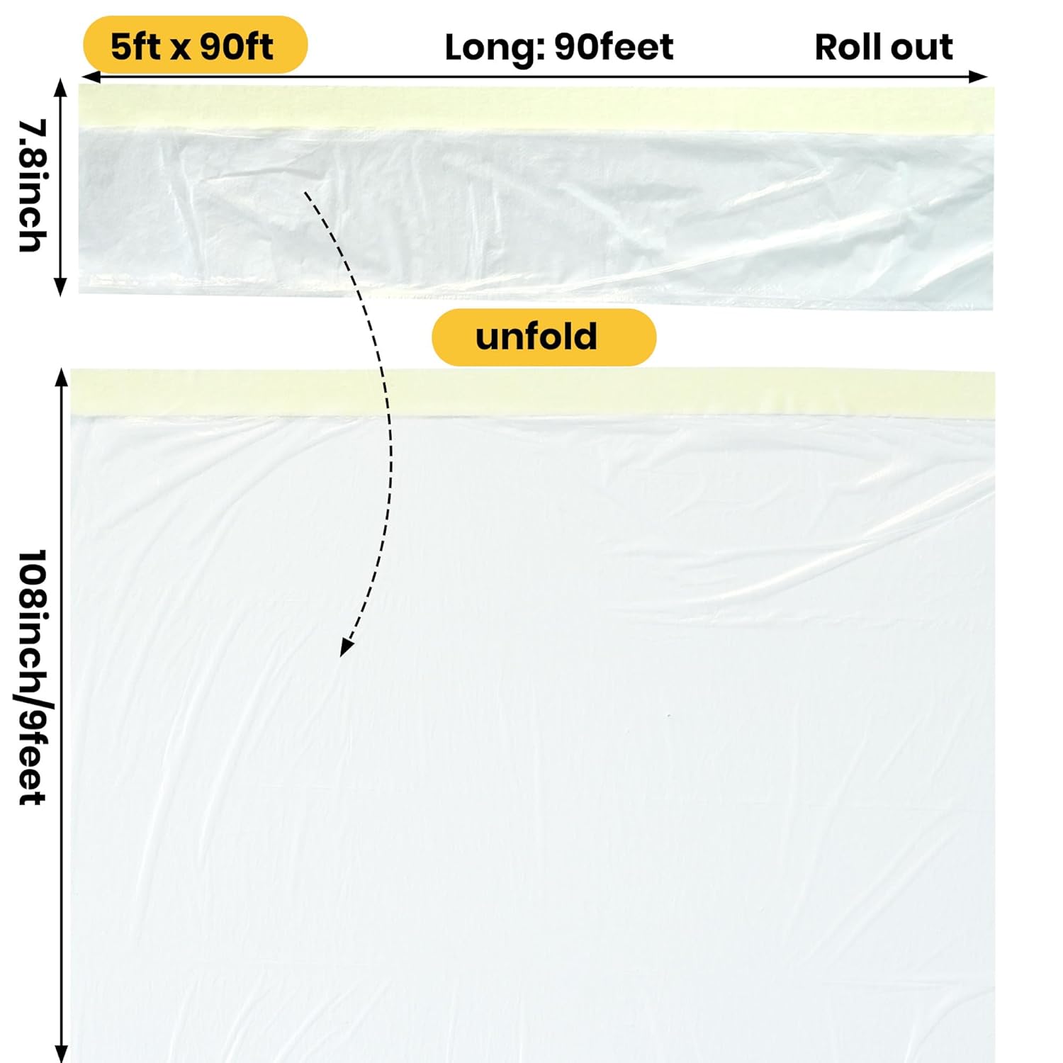- DROP CLOTH FOR PAINTING: Pack of 3 paint protective film, each roll measures 5 feet in width and 90 feet in length.