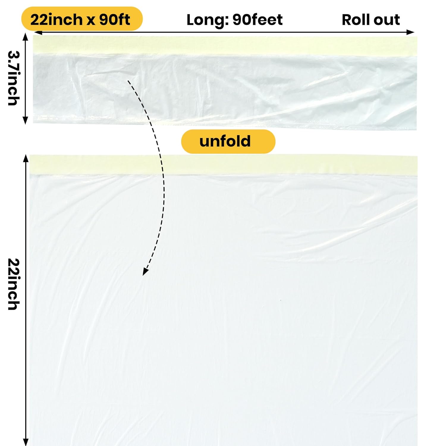 - 【Masking Film Size】Pack of 3 paint protective film, each roll of 22" W x 30 Yds Long.