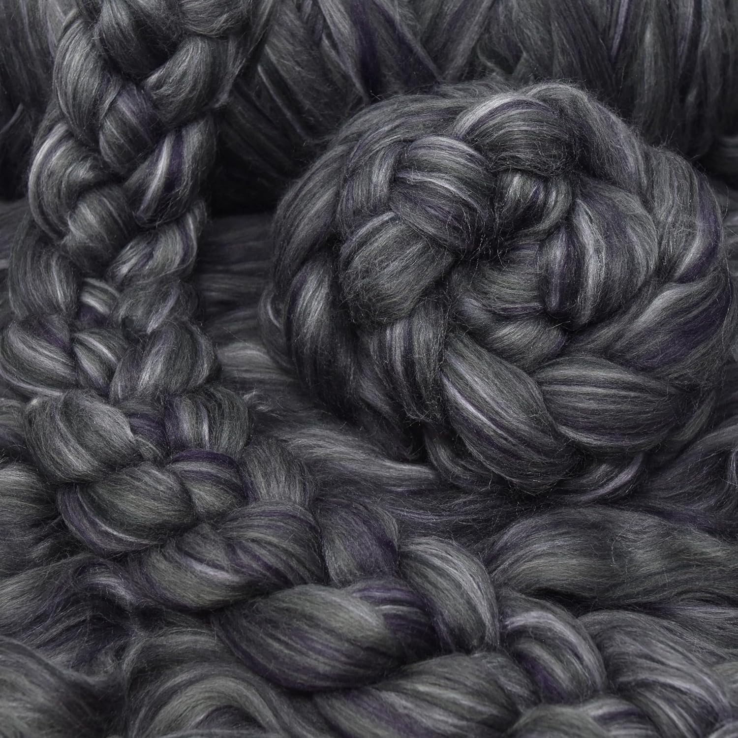 Merino Silk Luxe Tonal Designer Blend. Superfine Merino, Mulberry Silk, Tussah Silk. Top Roving for Spinning or Felting. Twilight 4oz
