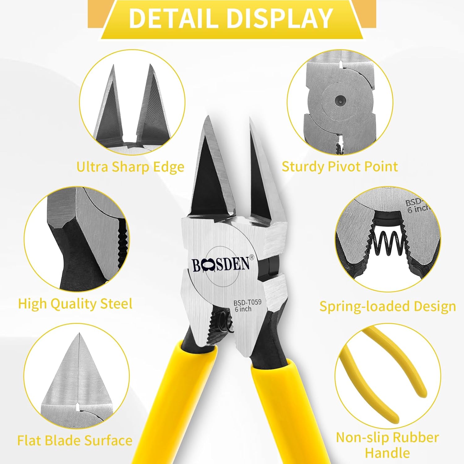 - 【Specialized Flush Cut】Designed with specialized flush cut blades, these flush cut wire cutters ensure a smooth and flat cut every time. Whether you're working on jewelry making, electrical installations, or model building, these side cutters pliers provide professional-grade results.