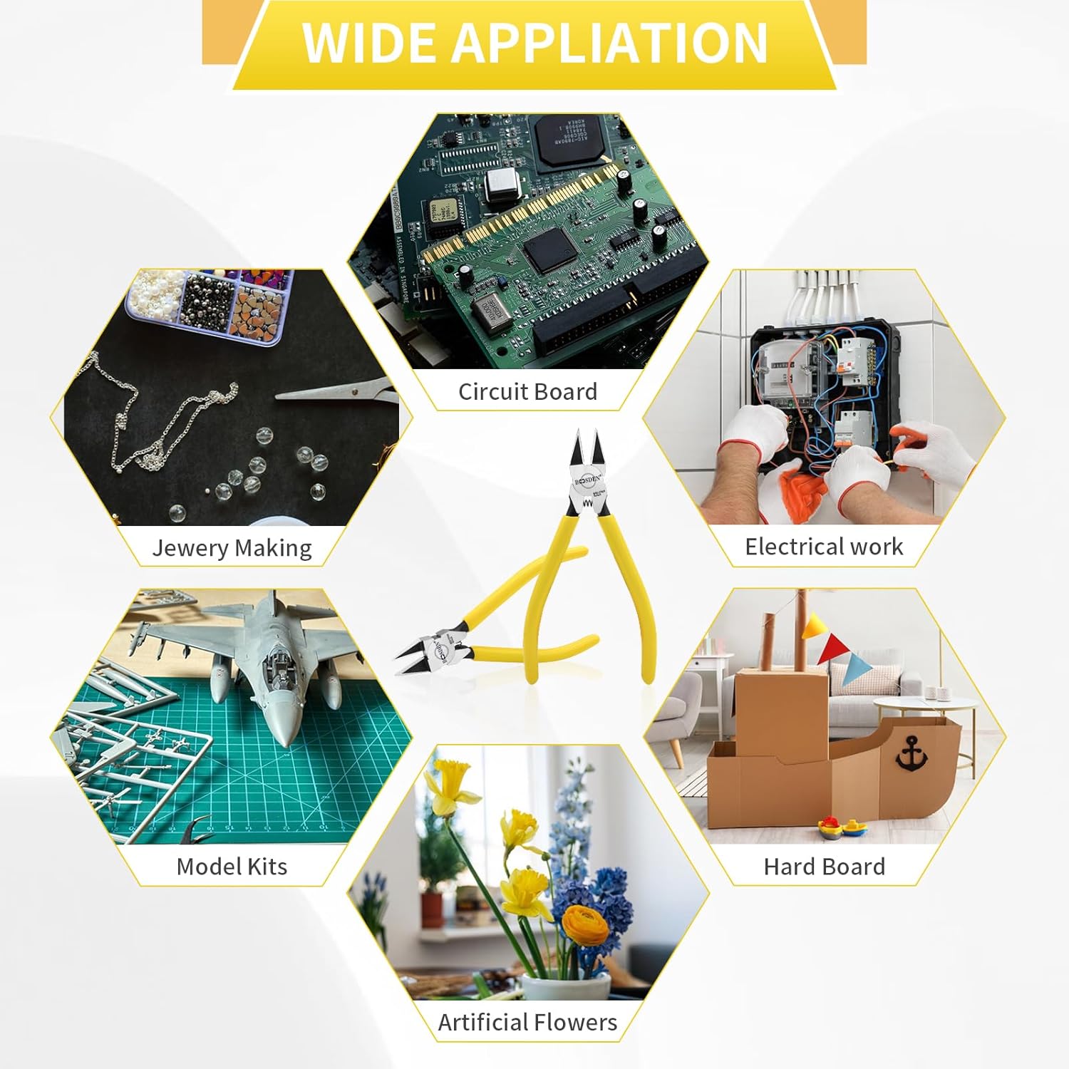 - 【Wide Application】Flush wire cutters are suitable for floral wire, soft copper wire, plastic wire, small cable, aluminum wire, soft alloy wire, cable ties, crafting projects, jewelry making, and electrical repairs, home repairs, instrument etc. Whether you're a professional electrician or a hobbyist, these wire cutter pliers offer comfort and efficiency.