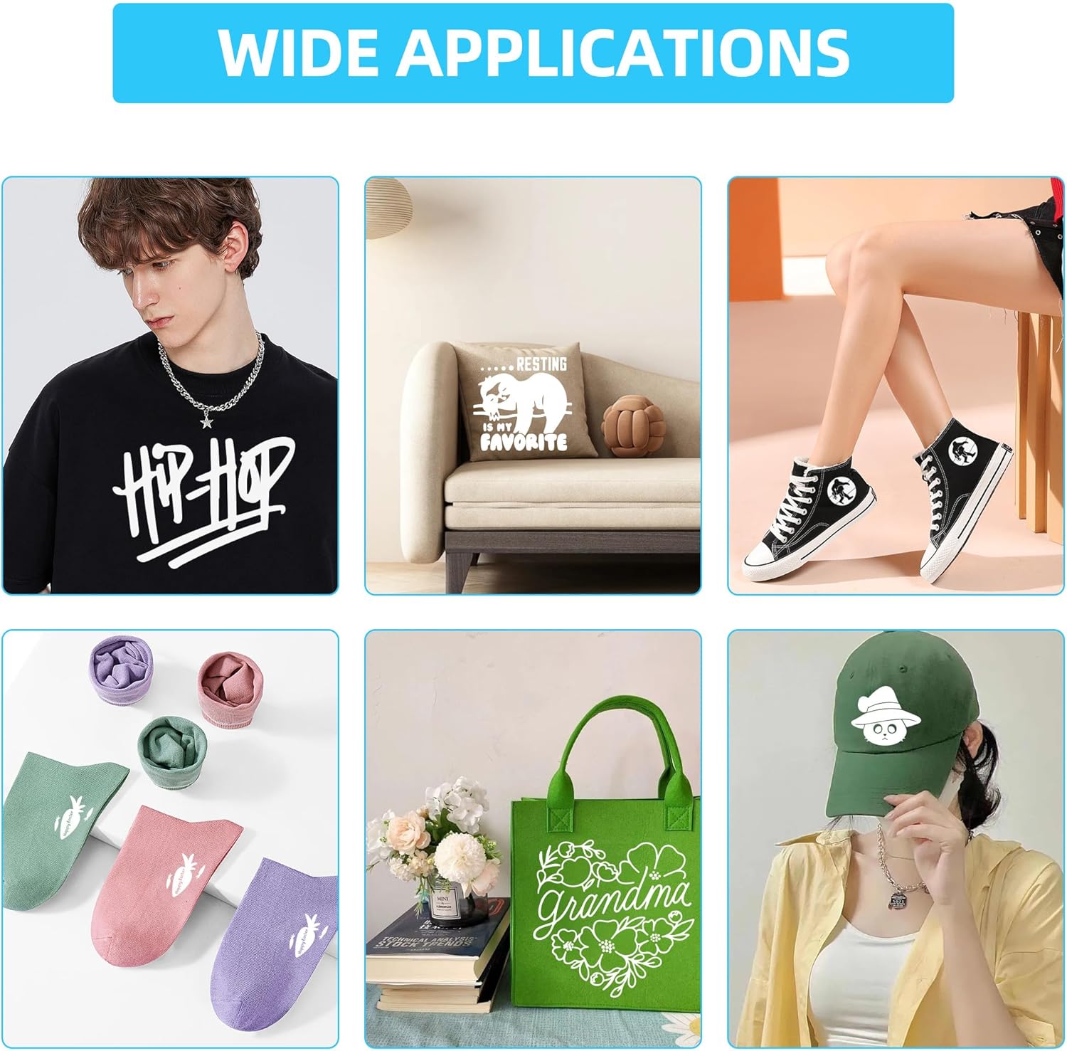 - WIDE APPLICATIONS: Suitable for use on sports mesh fabrics, cotton, polyester, cotton blends, lycra/spandex, and more. Whether you're making bags, shirts, sportswear, shoes, aprons, or pillows, our white htv vinyl will elevate your creations for holidays, parties, or everyday wear, ensuring impressive results for various occasions like birthday, mother's day, Halloween, independence day, Christmas and so on