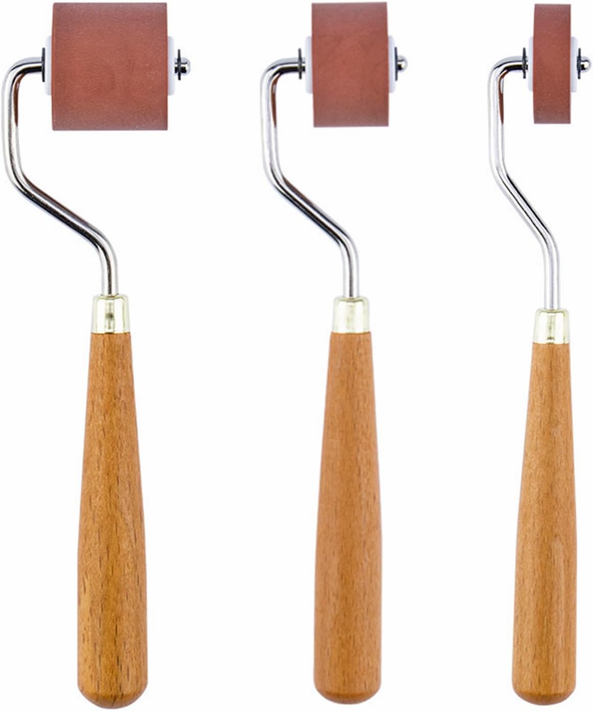 3Pcs Brayer Rubber Rollers, Printmaking Brayers, Art Craft Roller, Craft Stamping Brayers, Brayer Ink Roller with Comfort Wooden Handle for Print Stamping Tools Wallpapers and Scrapbooks
