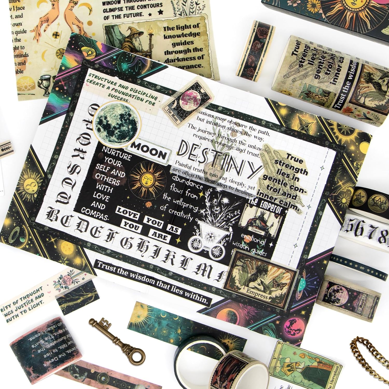 - [Pretty Gift] - The Tarot Style and Paper Tape box is exclusive and comes in a special unique box that is beautiful and useful as a gift for friends, Tarot lovers, junk journalers and journalers. It's a great gift for them for the start of the school year or a birthday gift and a box full of art and fun!
