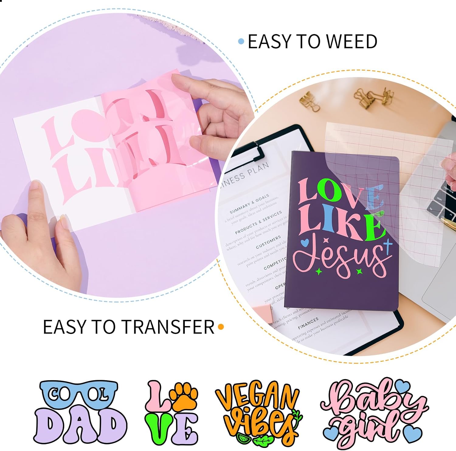 - Bright Permanent Adhesive Vinyl : This neon vinyl is designed to stay put once applied, ensuring that your creations maintain their quality and appearance over time.Packge including neon green vinyl,purple,neon pink vinyl,bright blue vinyl,neon orange vinyl