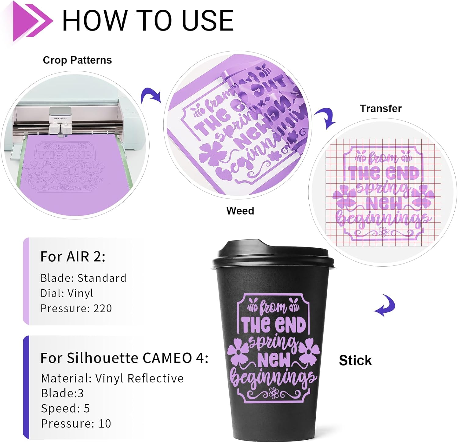 - Compatible with Cutting Machines: This permanent purple vinyl is compatible with most cutting machines, allowing you to create intricate designs with precision and ease
