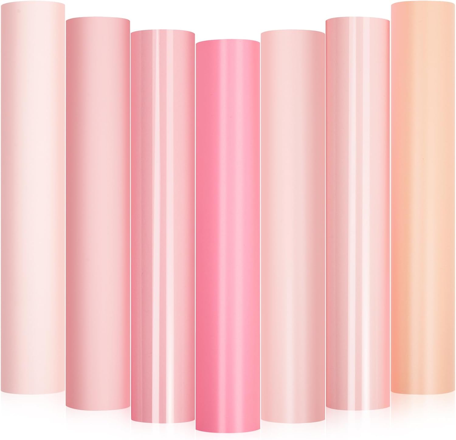 - Pink Series Vinyl Bundle: This is a pink vinyl bundle consisting of 7 different styles of pink permanent vinyl, including 5 sheets of matte material and 2 sheets of smooth pink self-adhesive vinyl
