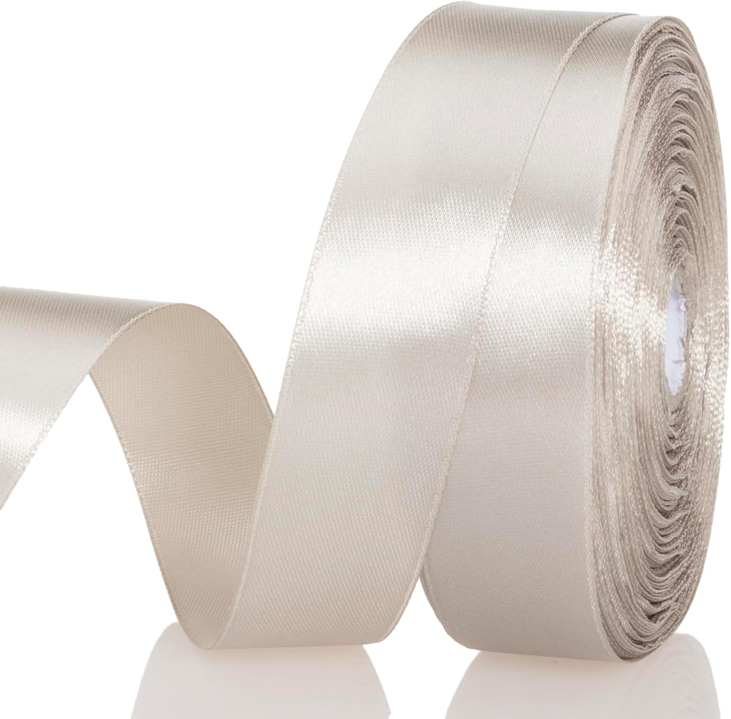 1 Inch Linen Beige Solid Satin Ribbon, 50 Yards Craft Fabric Ribbon for Gift Wrapping Floral Bouquets Wedding Party Decoration