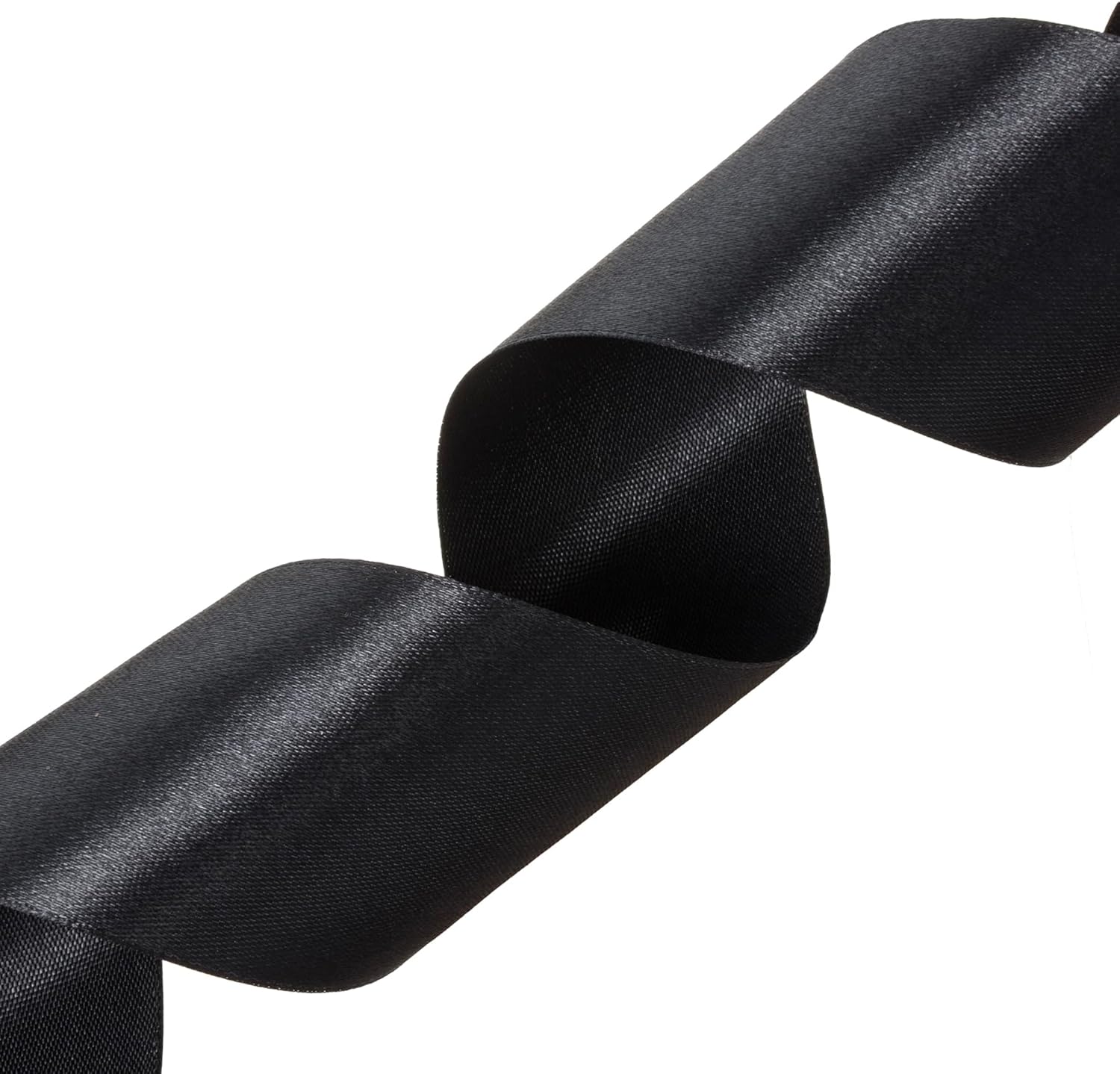 2 Inch Black Solid Satin Ribbon, 50 Yards Craft Fabric Ribbon for Gift Wrapping Floral Bouquets Wedding Party Decoration