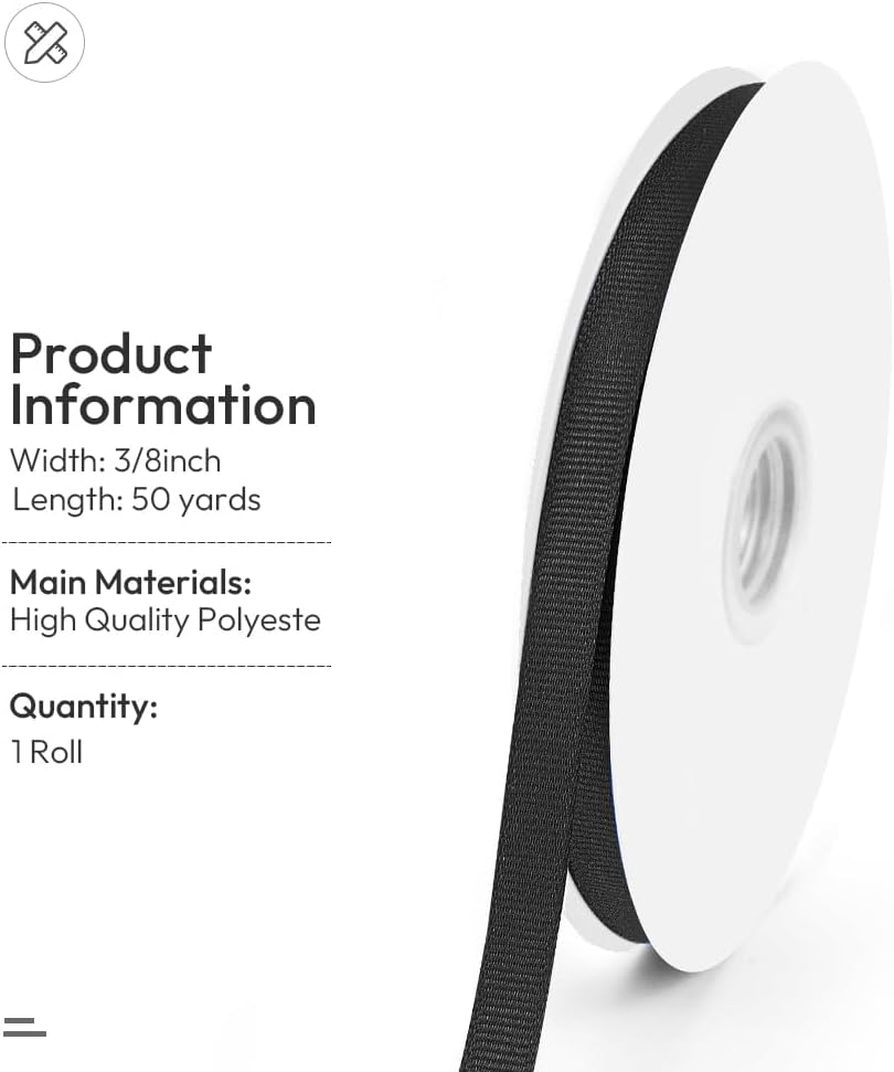 3/8" X 50 Yards Black Grosgrain Ribbon, Premium Grosgrain Ribbon for Sewing, Gift Wrapping, Bow Making, Wedding Decor, Wrapping and More (Black)
