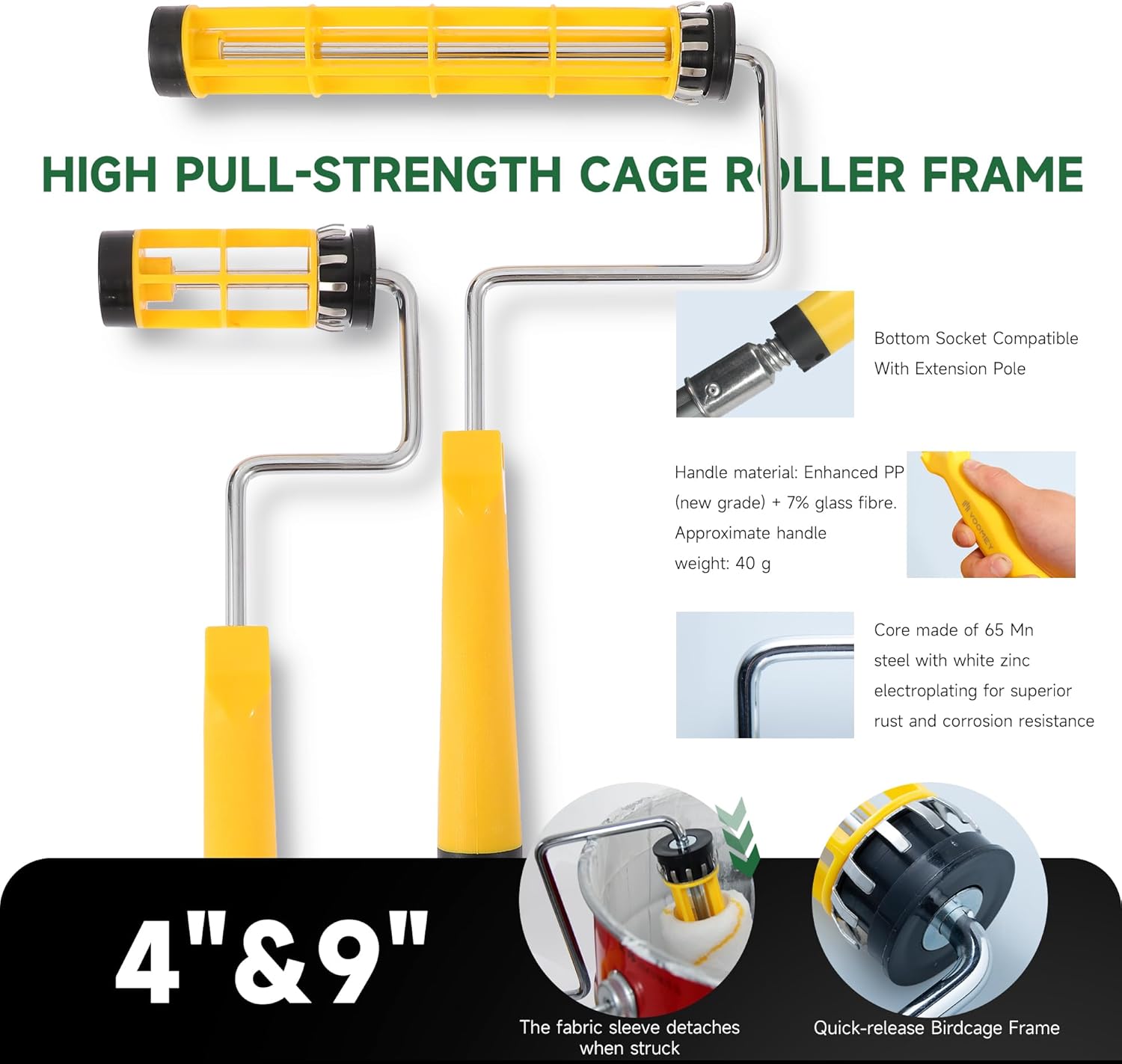 - Quick Release Roller Frame: Tap the stress point to quickly release the paint roller, no need to manually dismantle, save time and effort, is a necessary tool for professional painters
