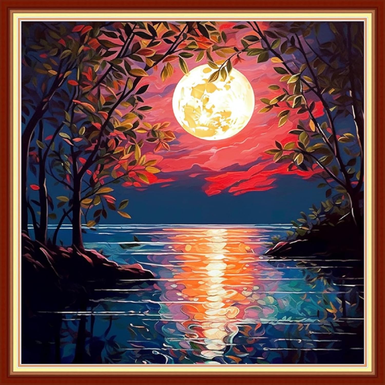 Foxdiviy Stamped Cross Stitch Kits Full Range of Embroidery Needlework Starter Kits for Beginners Adults 11CT Embroidery Patterns Art Crafts DIY Needlepoint Kits-Moonlight Scenery 18x18 inch