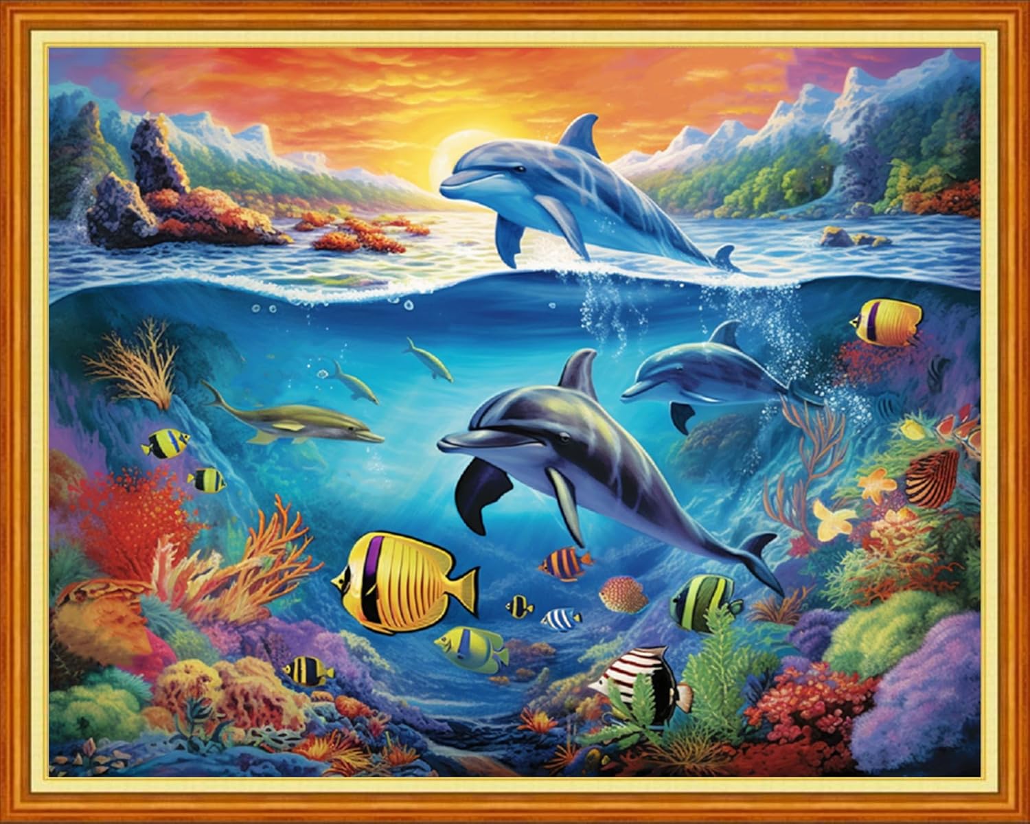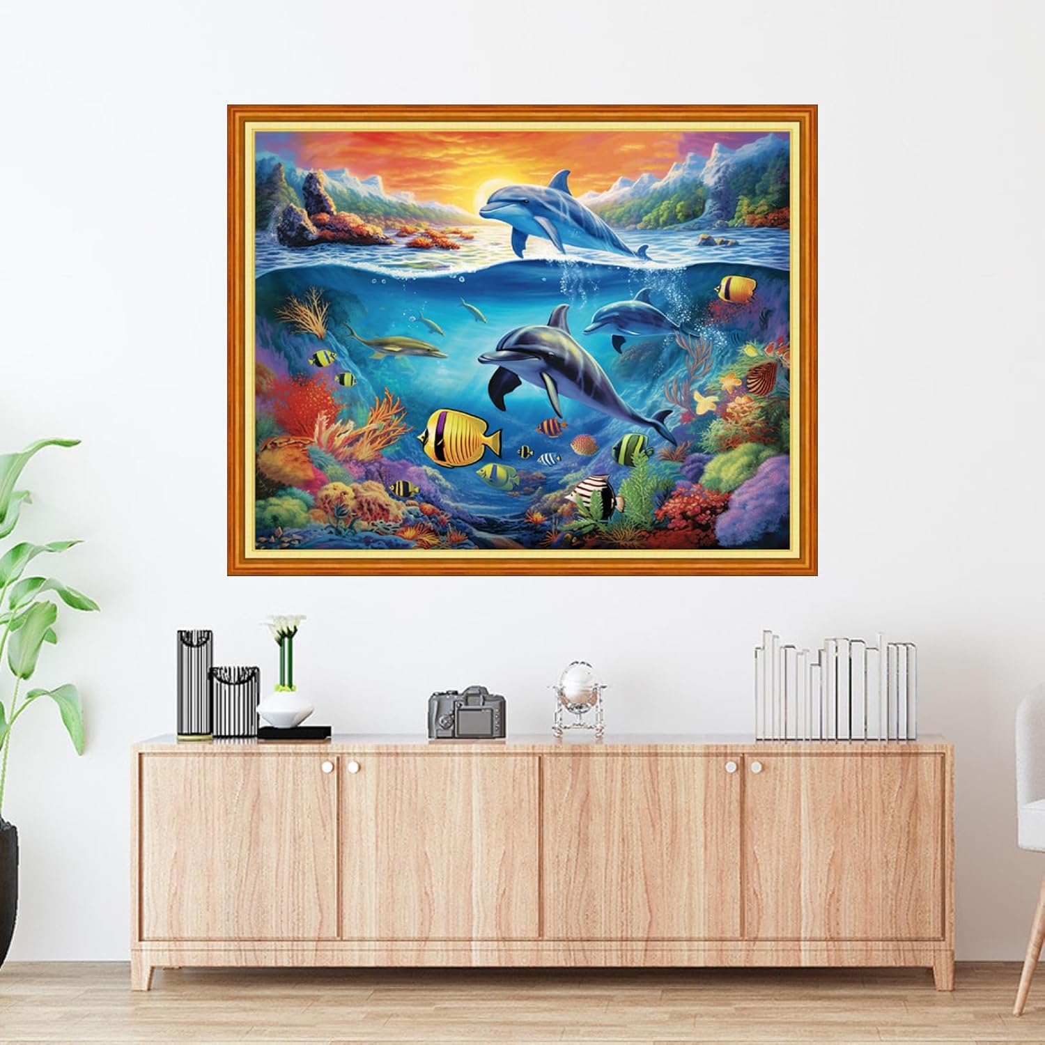 Foxdiviy Stamped Cross Stitch Kits Full Range of Embroidery Needlework Starter Kits for Beginners Adults 11CT Embroidery Patterns Art Crafts DIY Needlepoint Kits-Underwater World 16x20 inch