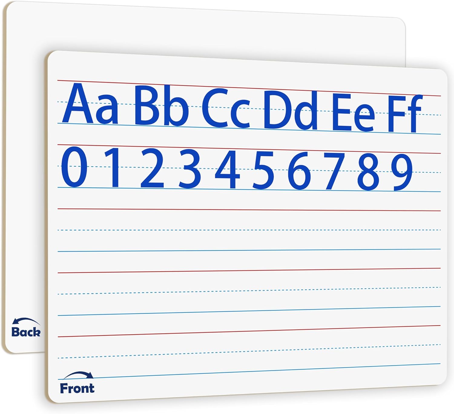 - 【Double Sided Dry Erase Board】The lined whiteboard for kids is perfect for student, and classroom use Use the dry erase boards for kids to practice penmanship or as a dry erase notepad white boards with lines.The LINE side can be used for practicing or learning to write,the BLANK side can be used for various free creations,such as drawing or playing games.